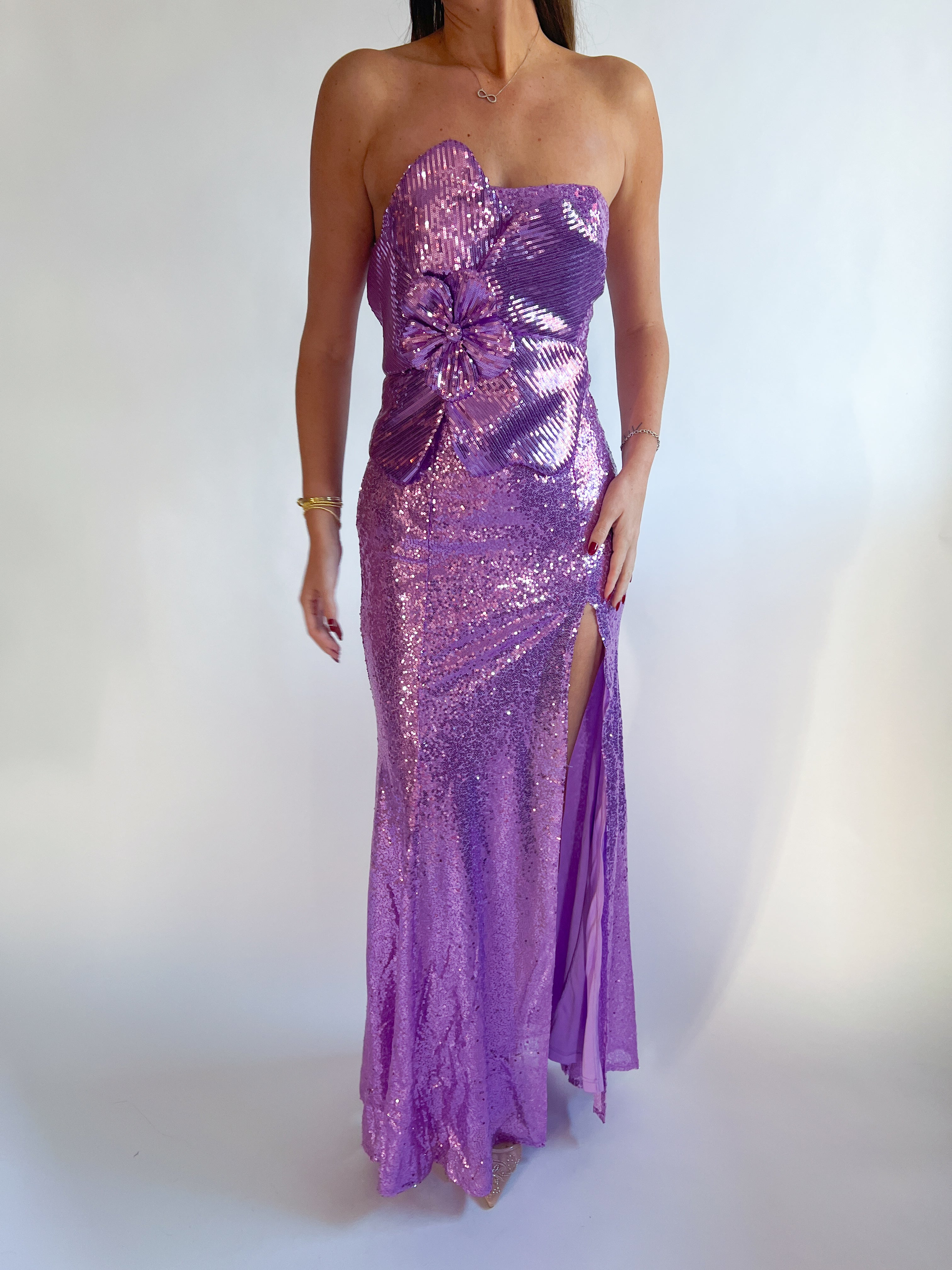 Corinne Sequin Cut Out Back Gown
