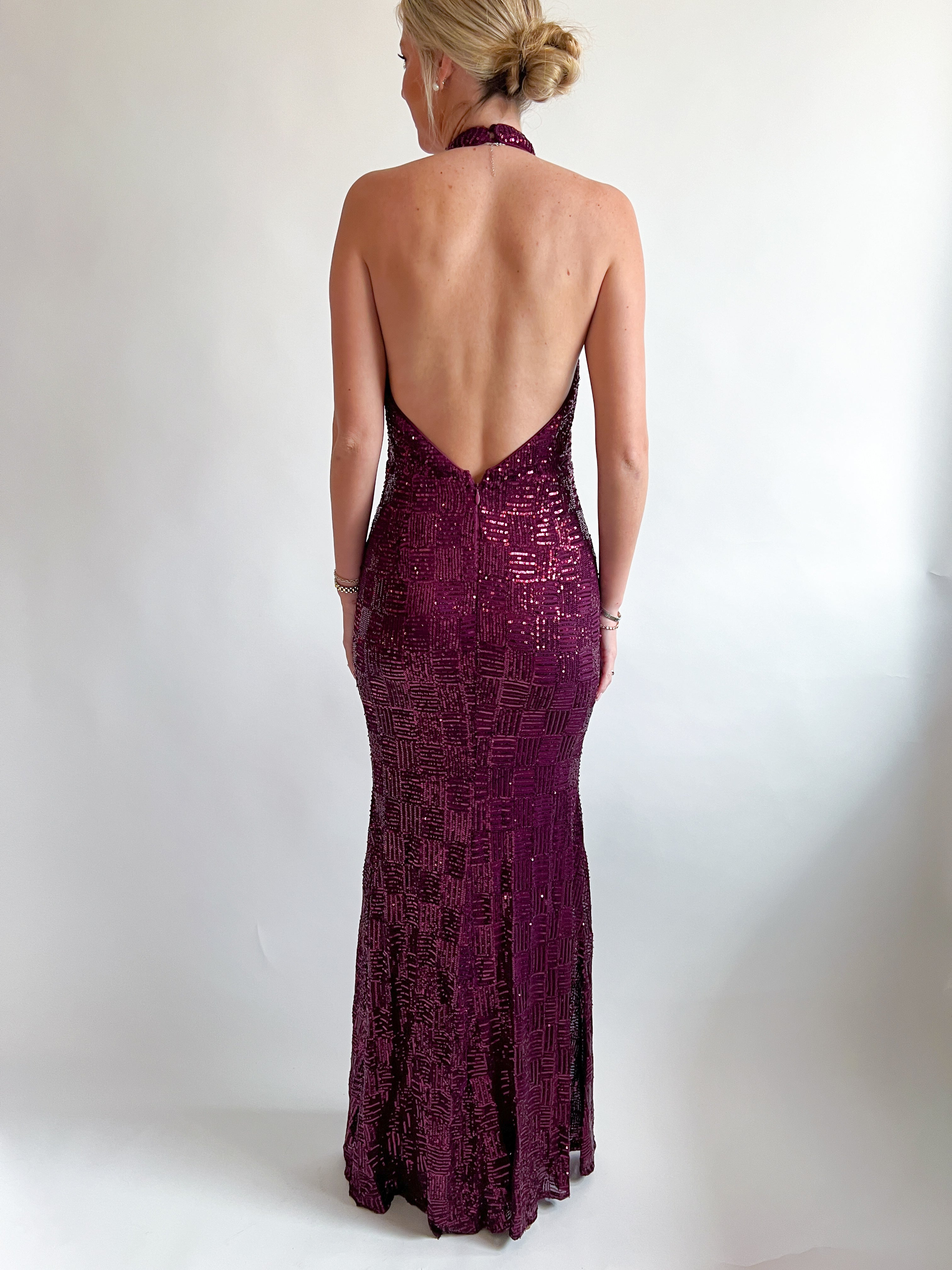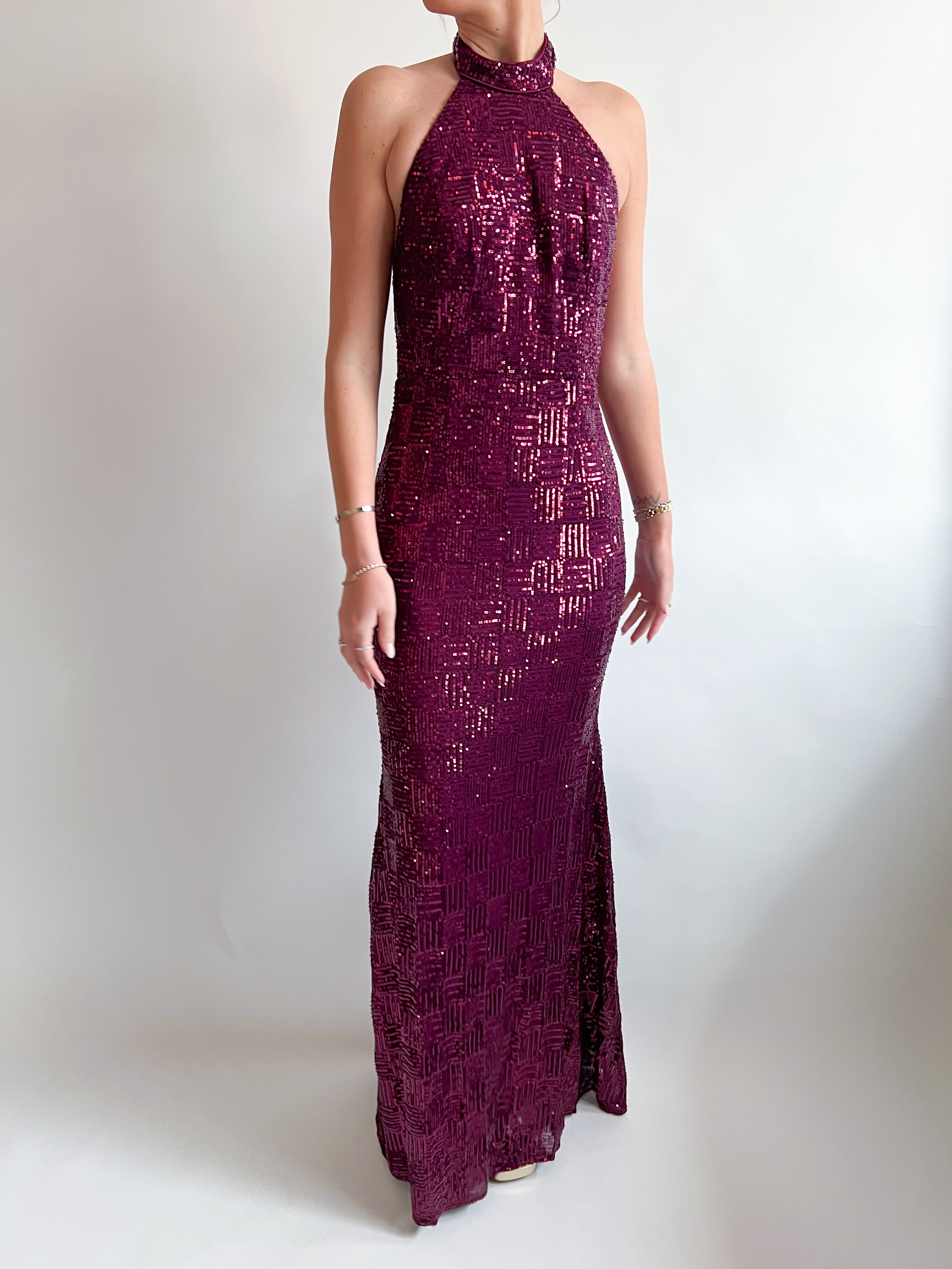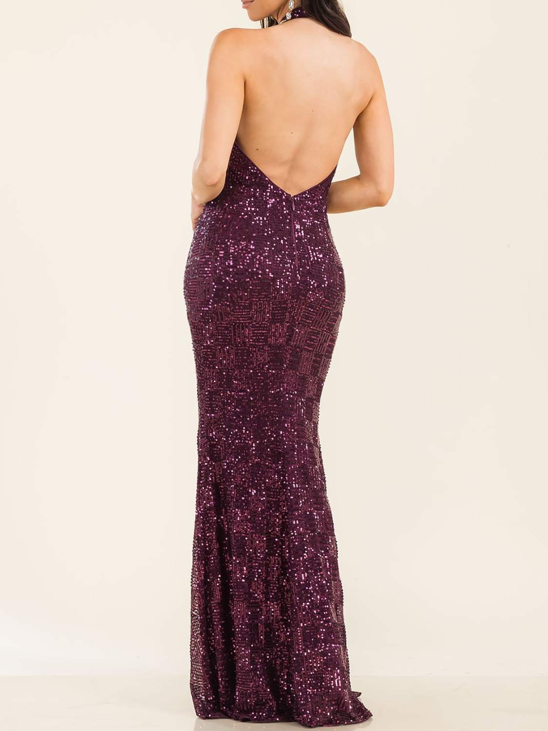Be the center of attention in our stunning Halter Sequin Maxi Gown. The halter neck and sequin detailing will make you stand out from the crowd. Feel confident and glamorous while turning heads at any event. Step into the spotlight with this must-have dress.