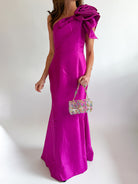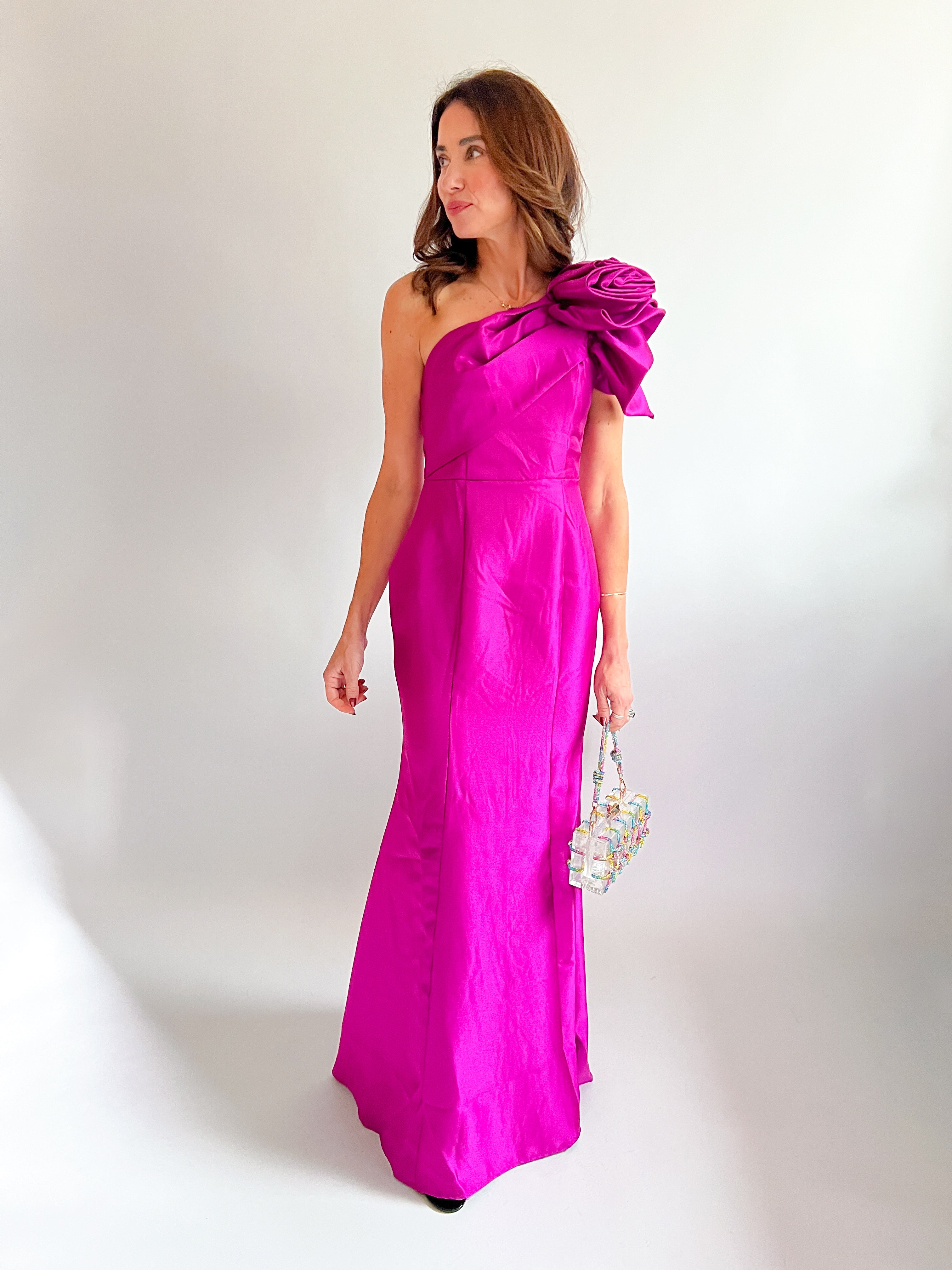 Elevate your style with our Liliana One Shoulder Satin Gown. Crafted with luxurious satin fabric, this gown features a unique one shoulder design that will make you stand out in any event. Feel confident and glamorous as you make a statement in this stunning dress.