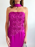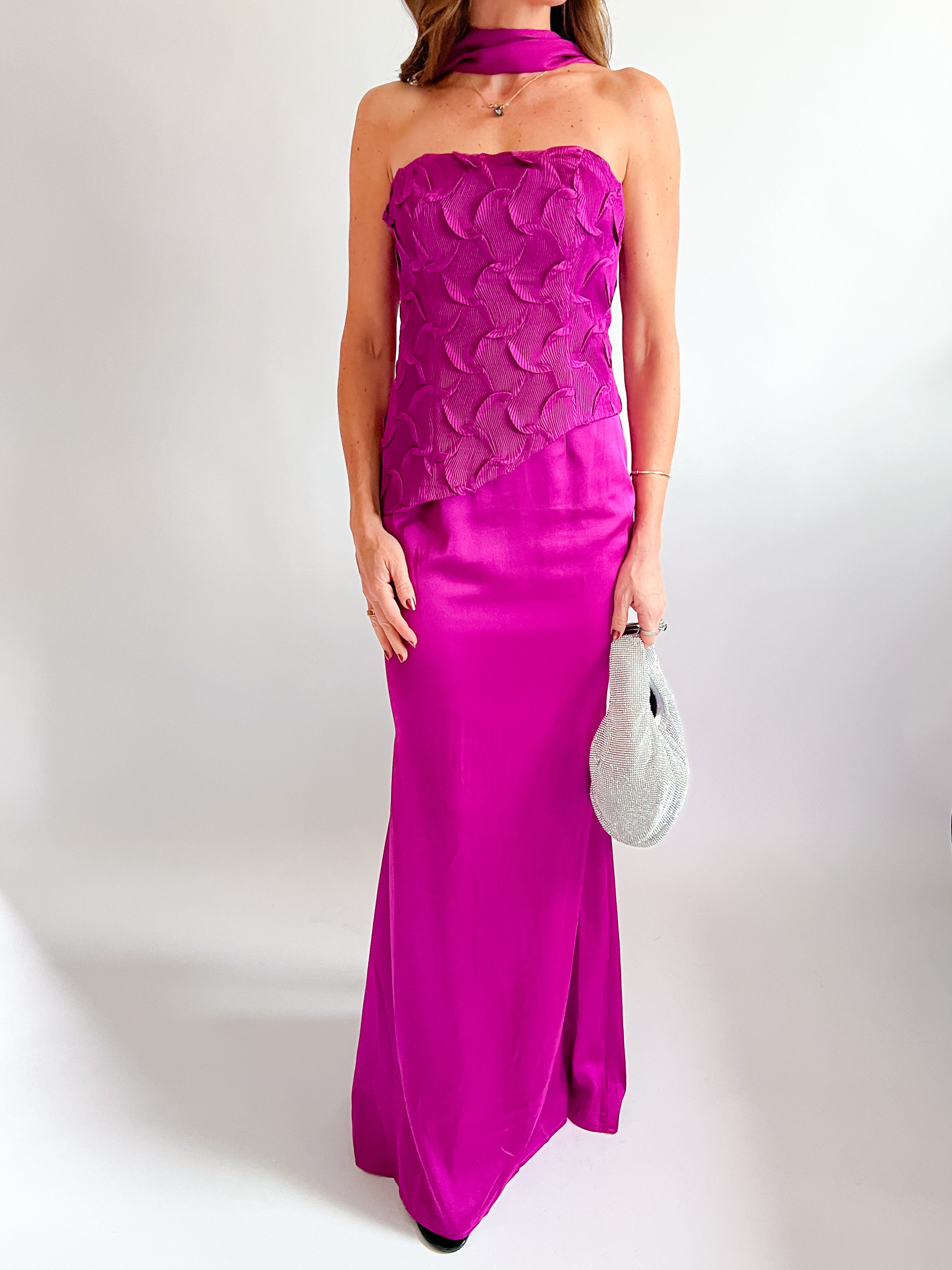 Elevate your style with our Patterned Top Corset Gown! The matching scarf adds a touch of elegance and versatility. Stand out in this unique piece that will enhance your figure and make you feel confident. Perfect for any formal event or special occasion.