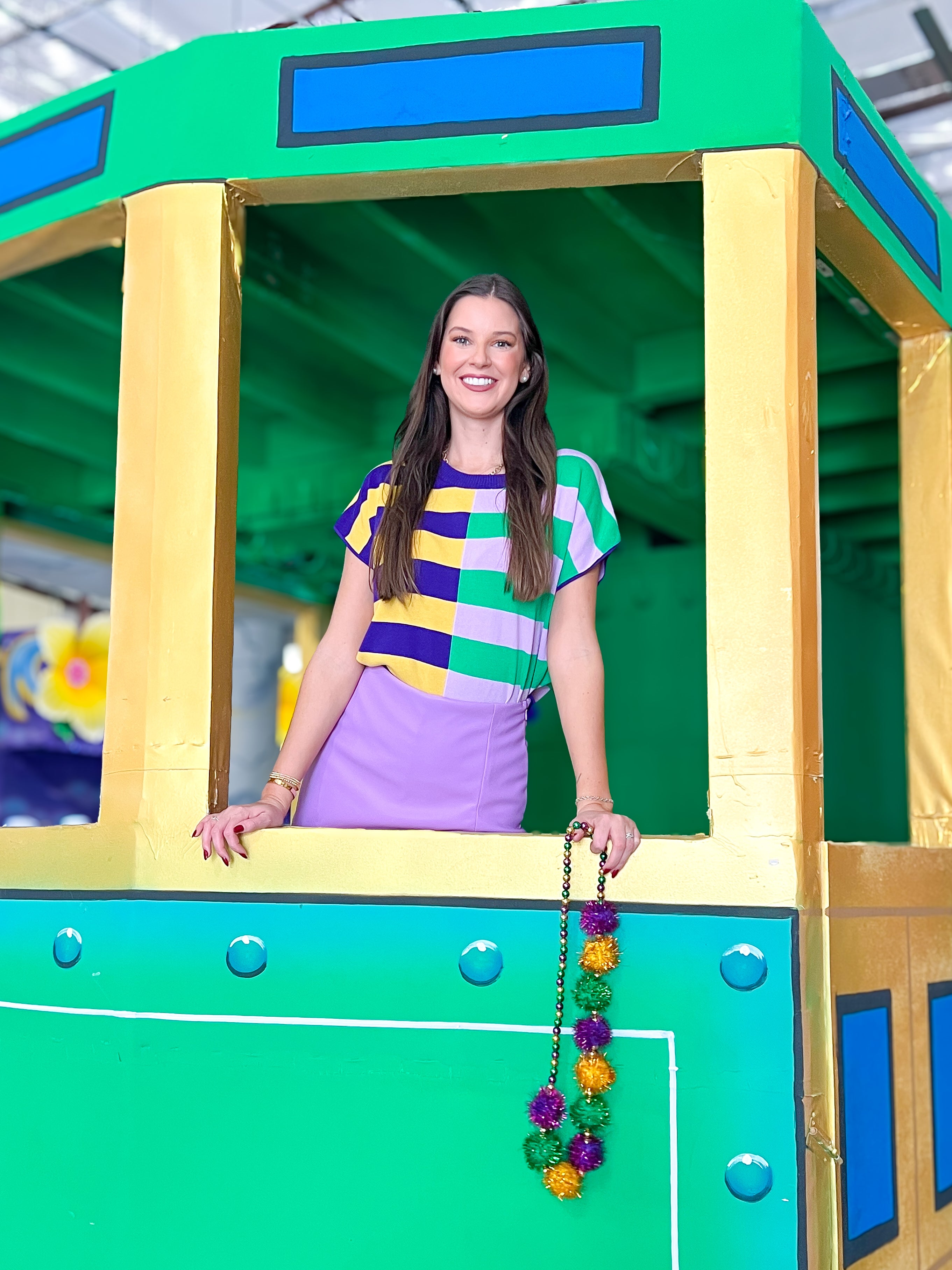 Mardi Gras Multi Color Stripe Mixed Top
