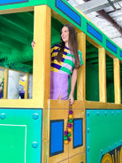 Celebrate the spirit of New Orleans with this vibrant Mardi Gras Multi Color Stripe Mixed Sweater! Featuring bold, eye-catching stripes in classic carnival colors, this cozy knit brings festive flair to your everyday wardrobe. Perfect for showing your love for the Big Easy year-round, whether you're attending a parade or just want to add some playful personality to your look. The mixed fabric blend ensures comfort and durability, making it an instant favorite for any occasion. Get ready to turn heads and spread the joy!