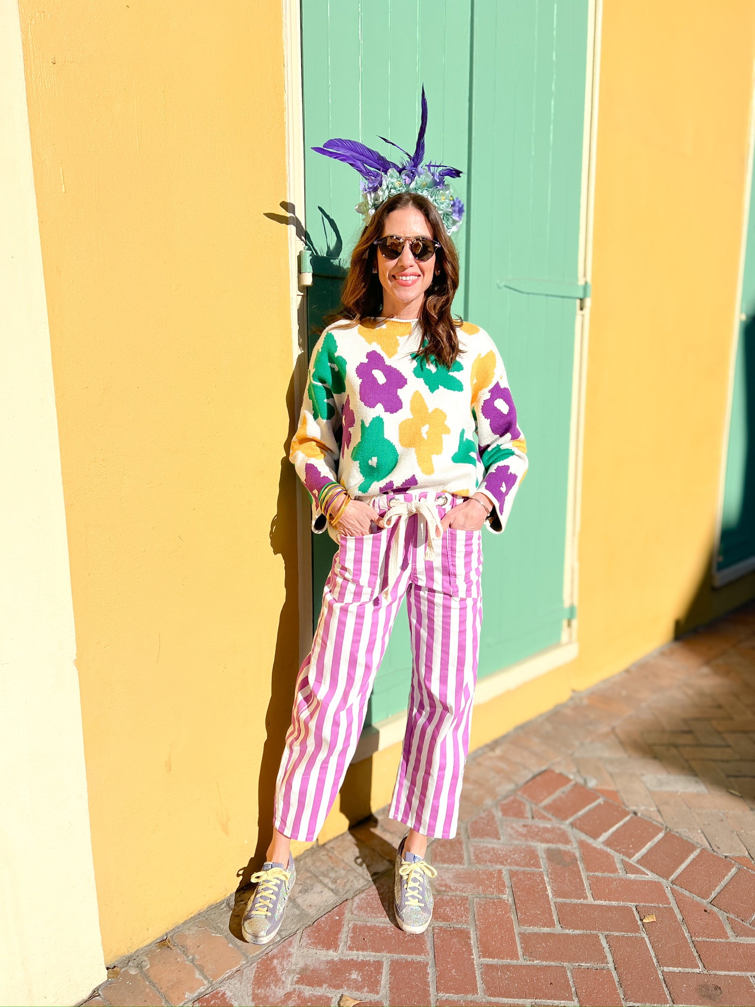 Celebrate the spirit of New Orleans in this vibrant Mardi Gras Relaxed Fit Petal Pop Soft Sweater! Featuring playful petal-inspired details and a comfortable relaxed fit, this cozy knit is perfect for festival season or everyday wear. The soft fabric feels amazing against your skin, while the eye-catching design brings instant joy to your wardrobe. Whether you're dancing through the streets or keeping it casual, this sweater captures that festive Mardi Gras magic in the most wearable way. Get ready to turn heads and spread good vibes!