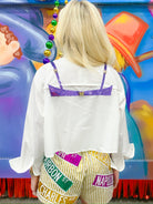 Strut down the streets in style with these Metallic Gold NOLA Street Sign Shorts! Featuring a shimmering gold finish that catches the light beautifully, these shorts celebrate the iconic charm of New Orleans with unmistakable flair. Perfect for warm weather adventures, festival season, or whenever you want to showcase your love for the Big Easy, they're designed to make you stand out from the crowd. The eye-catching metallic detailing paired with authentic NOLA street sign imagery creates a look that's both trendy and meaningful. Comfortable enough for all-day wear yet bold enough to turn heads, these shorts are your go-to piece for expressing that New Orleans spirit with confidence and pizzazz!