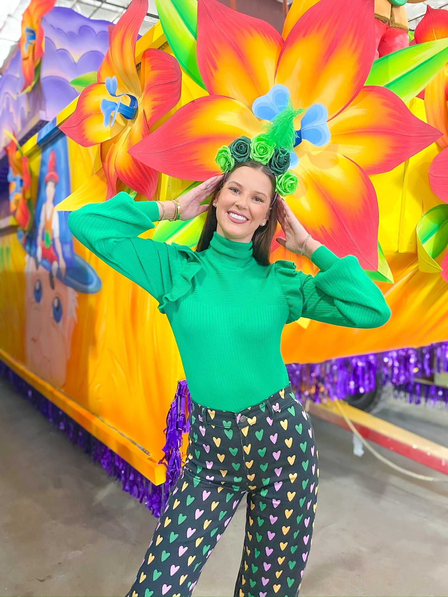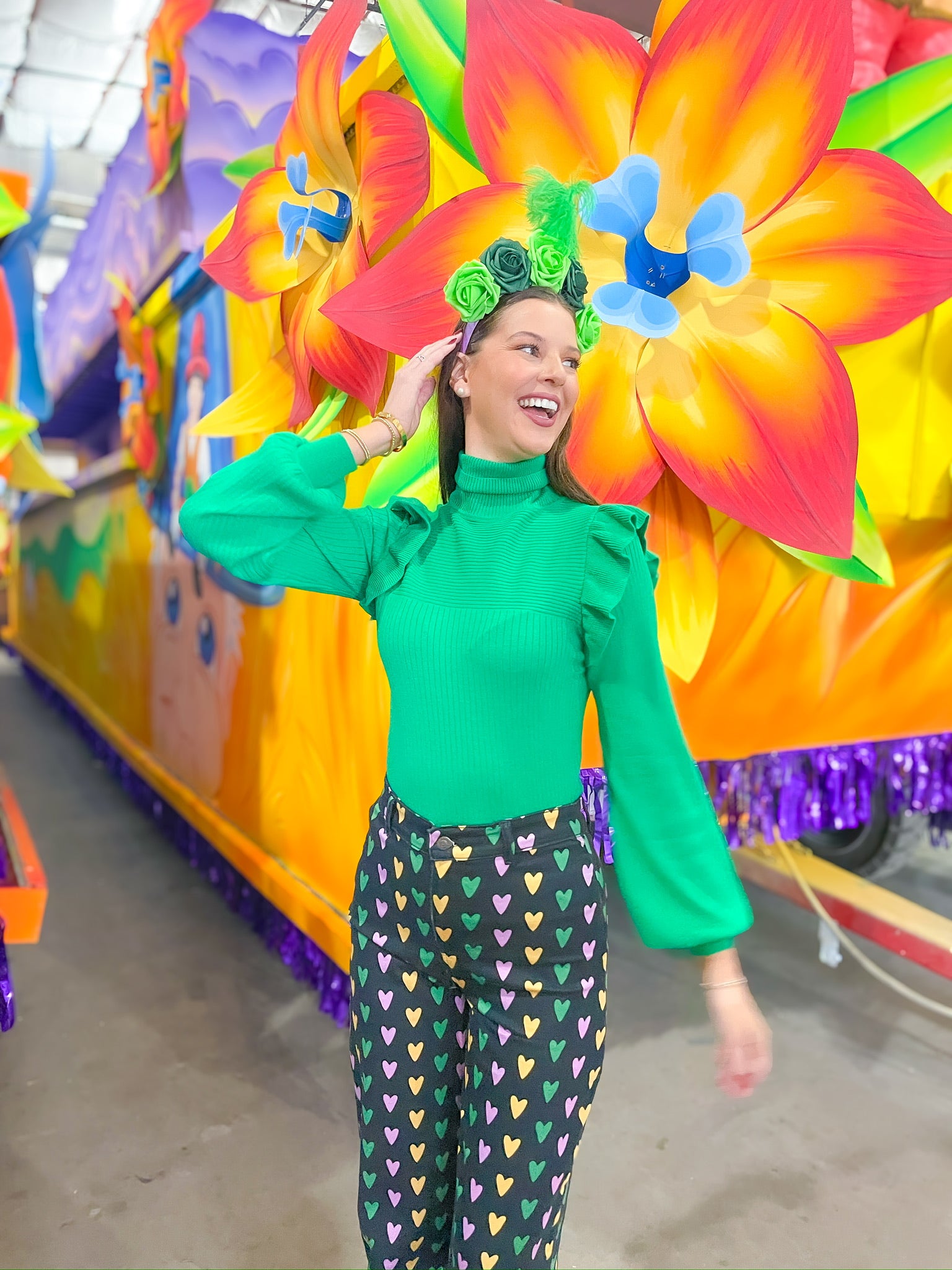 Mardi Gras Shoulder Ruffle Turtleneck Sweater