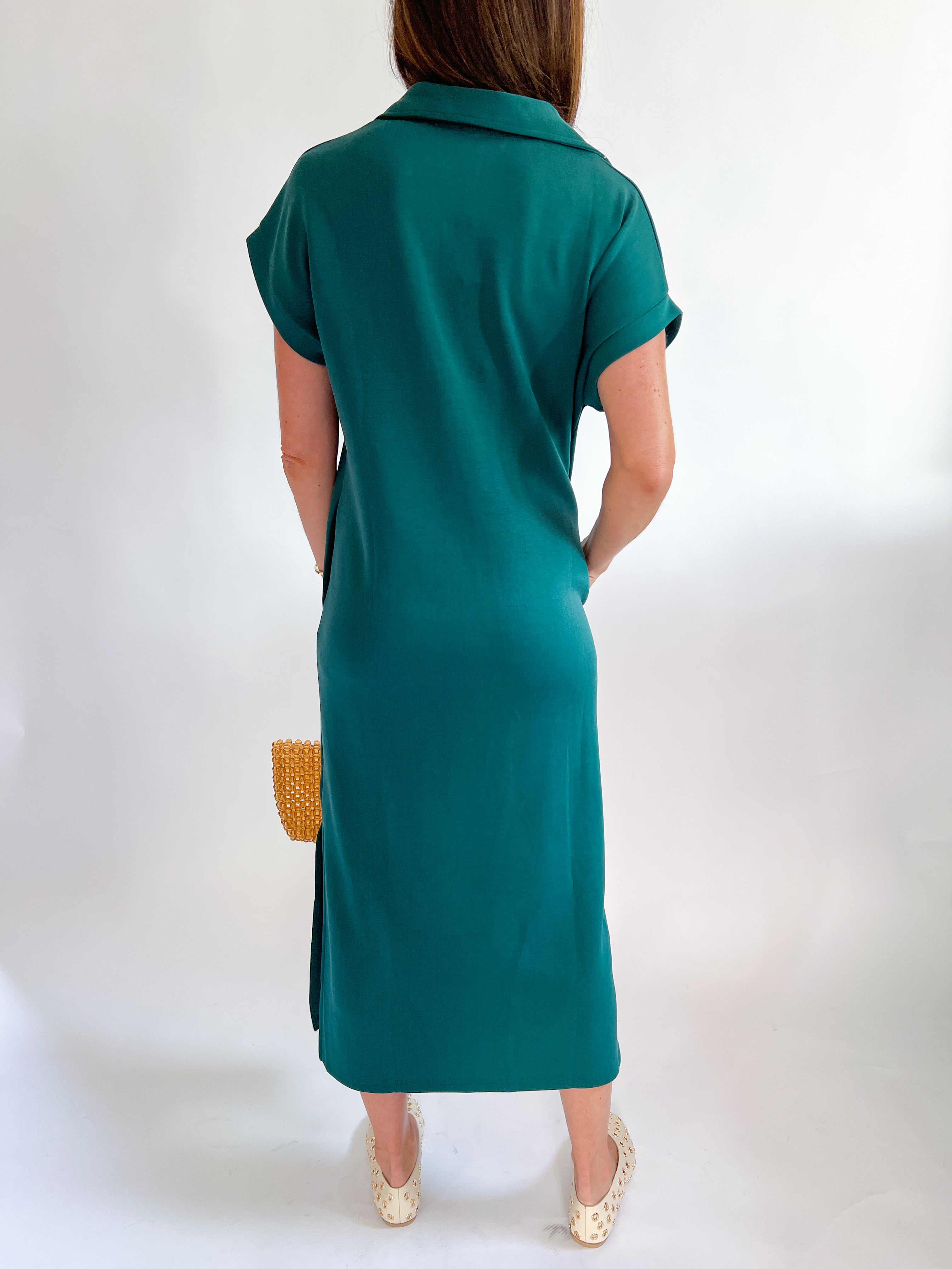 Split Collar Midi Shift Dress