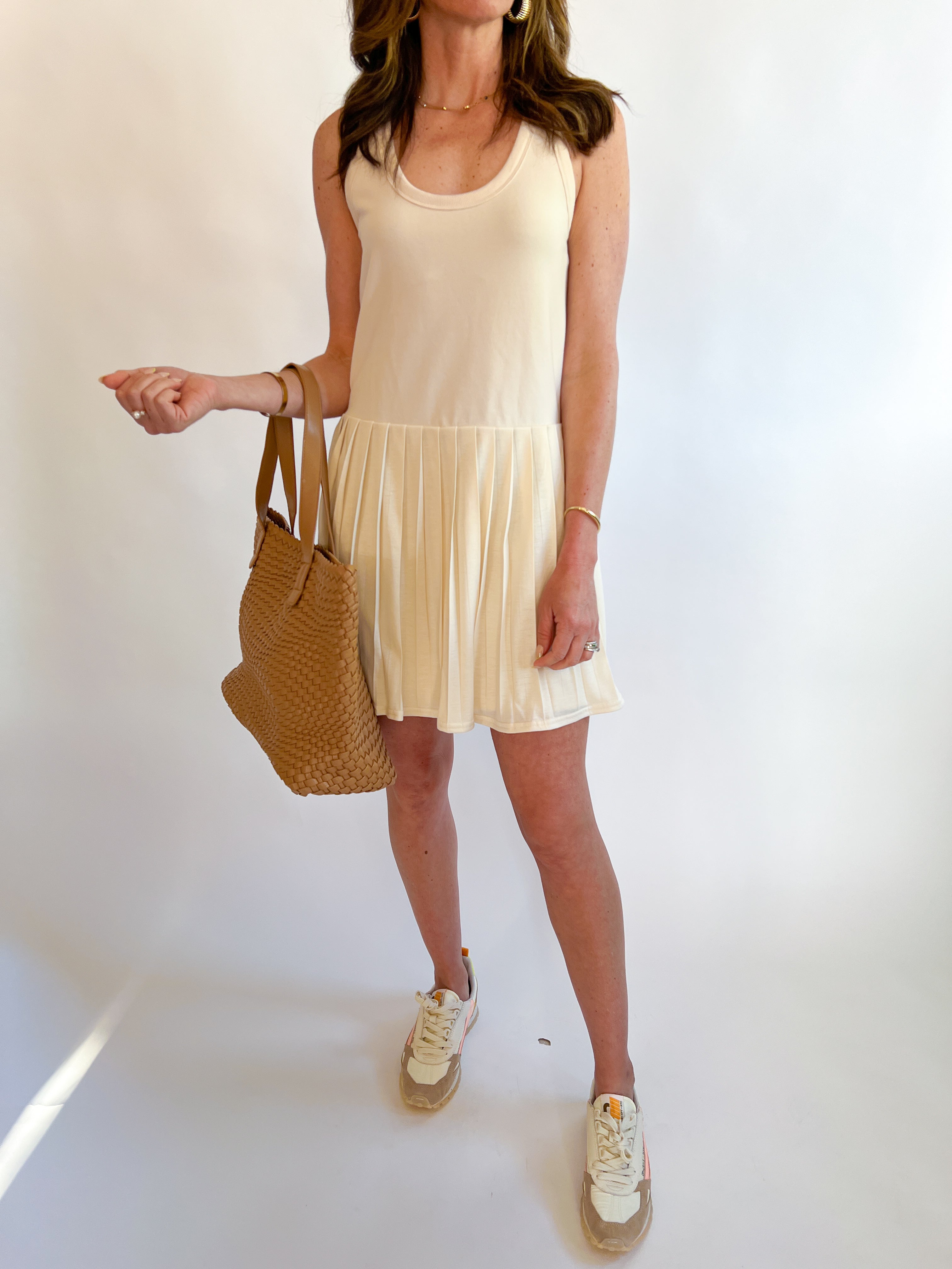 The Bobbi Dress is a versatile must-have for your wardrobe. Its tank top upper body and pleated skirt bottom, made with our signature lux wash fabric, exude effortless style. Dress it up with sandals or keep it casual with sneakers for a day on the go.