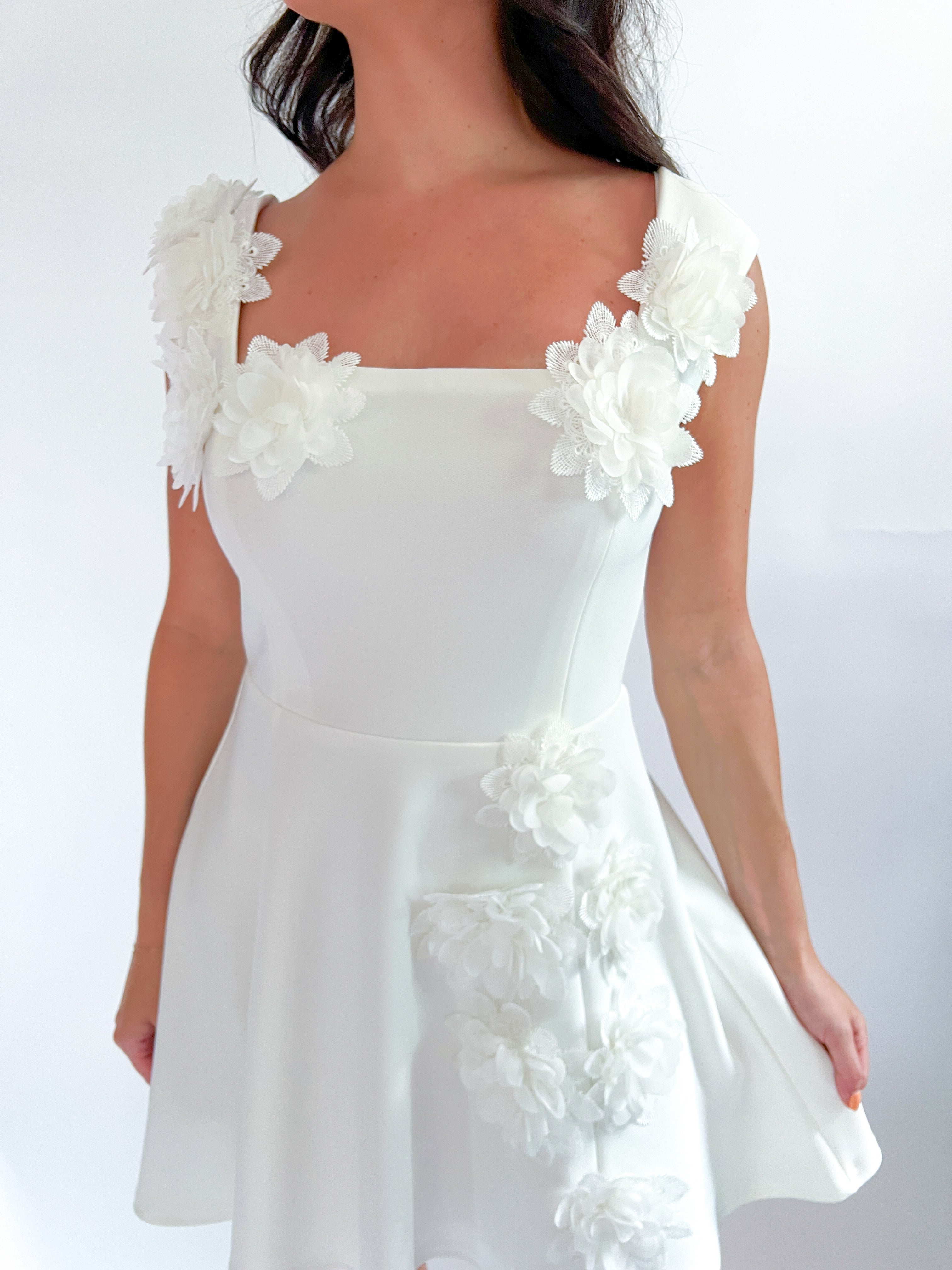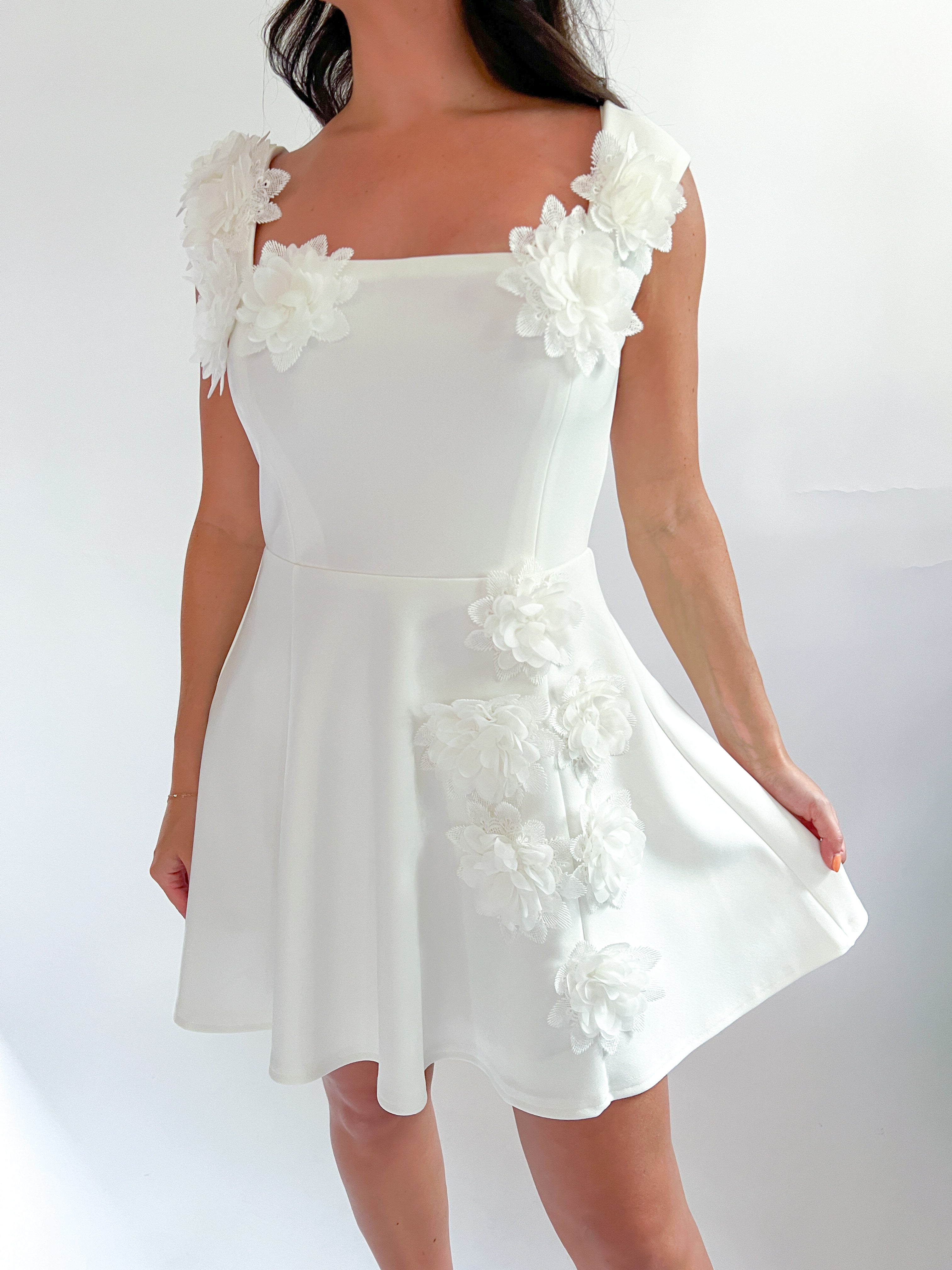 The Jada Floral Mini Dress in White is the perfect blend of sophistication and charm. Designed in Bella stretch crepe, this piece offers a figure-enhancing fit while ensuring all-day comfort. The structured square neckline and thick straps create a polished and timeless look, making it an effortlessly stylish choice for any occasion.