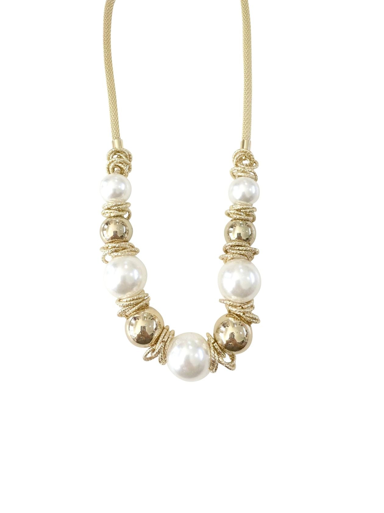 Discover luxurious texture with the Pearl Mesh Gold Beaded Necklace, a sophisticated piece that combines classic elegance with modern appeal. The delicate mesh design studded with lustrous pearls and gold beads creates a rich, dimensional look that catches light beautifully. This statement-making necklace brings instant refinement to your style, whether you're attending a gala or elevating your everyday ensemble. The intricate beadwork showcases exceptional craftsmanship, making it a treasured piece you'll love wearing for years to come.