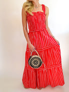 Effortless elegance meets timeless style with this striped woven maxi skirt. The flowing silhouette drapes beautifully, creating movement with every step while the classic stripe pattern adds visual interest and versatility. Perfect for layering with your favorite tops, this piece transitions seamlessly from casual daytime looks to evening occasions. The breathable woven fabric ensures comfort all day long, making it an essential addition to any wardrobe.
