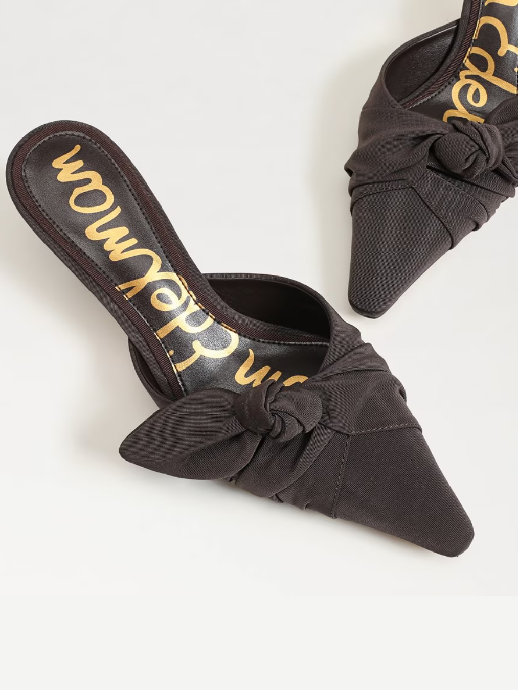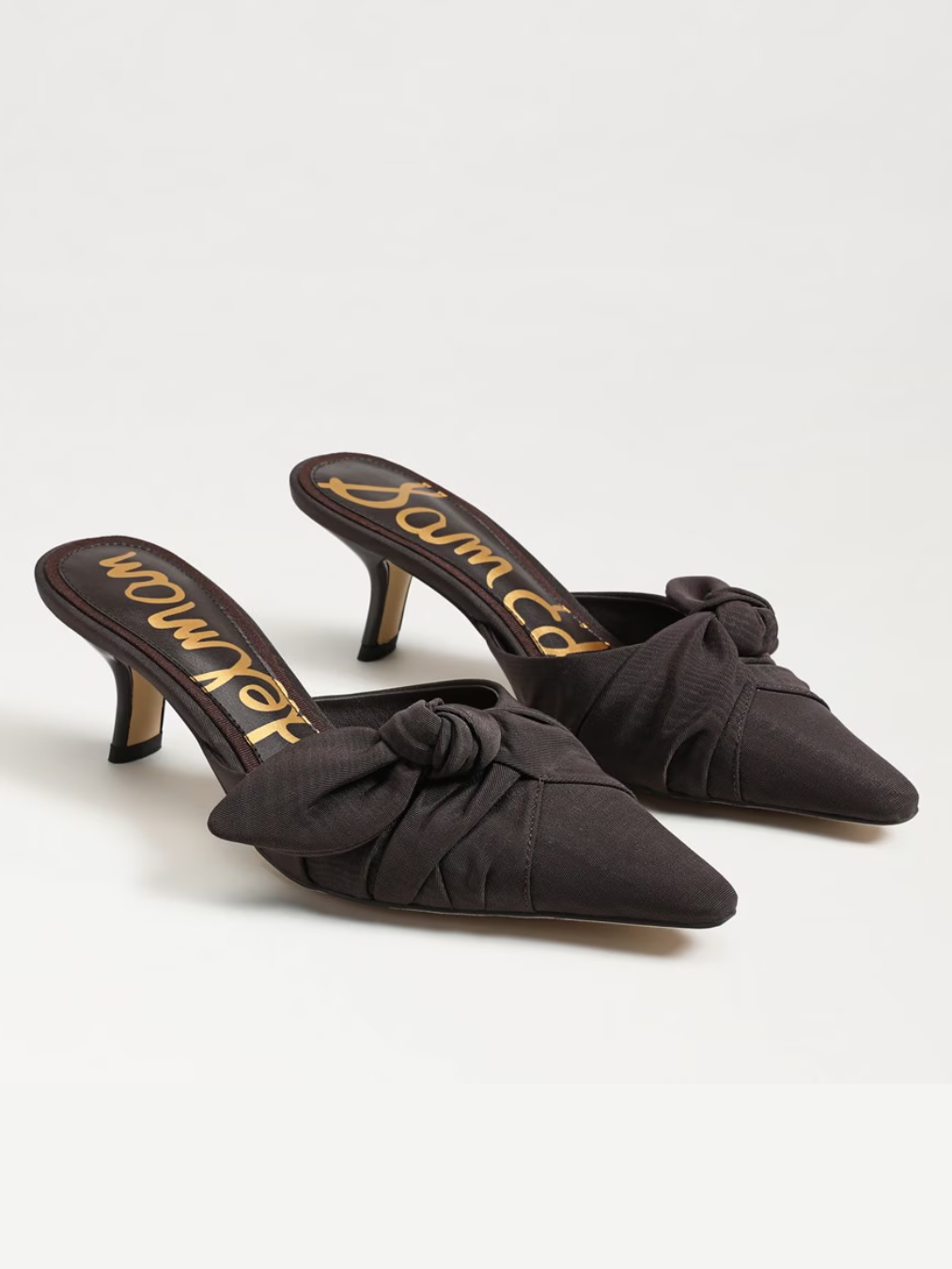 Step into effortless chic with the Bex mule, designed to add a bold and stylish flair to your wardrobe. With its sleek pointed toe and eye-catching statement knot, this 2.375-inch heeled mule balances playful charm and sophistication perfectly. Ideal for dressing up any outfit, Bex brings confident elegance wherever you go.
