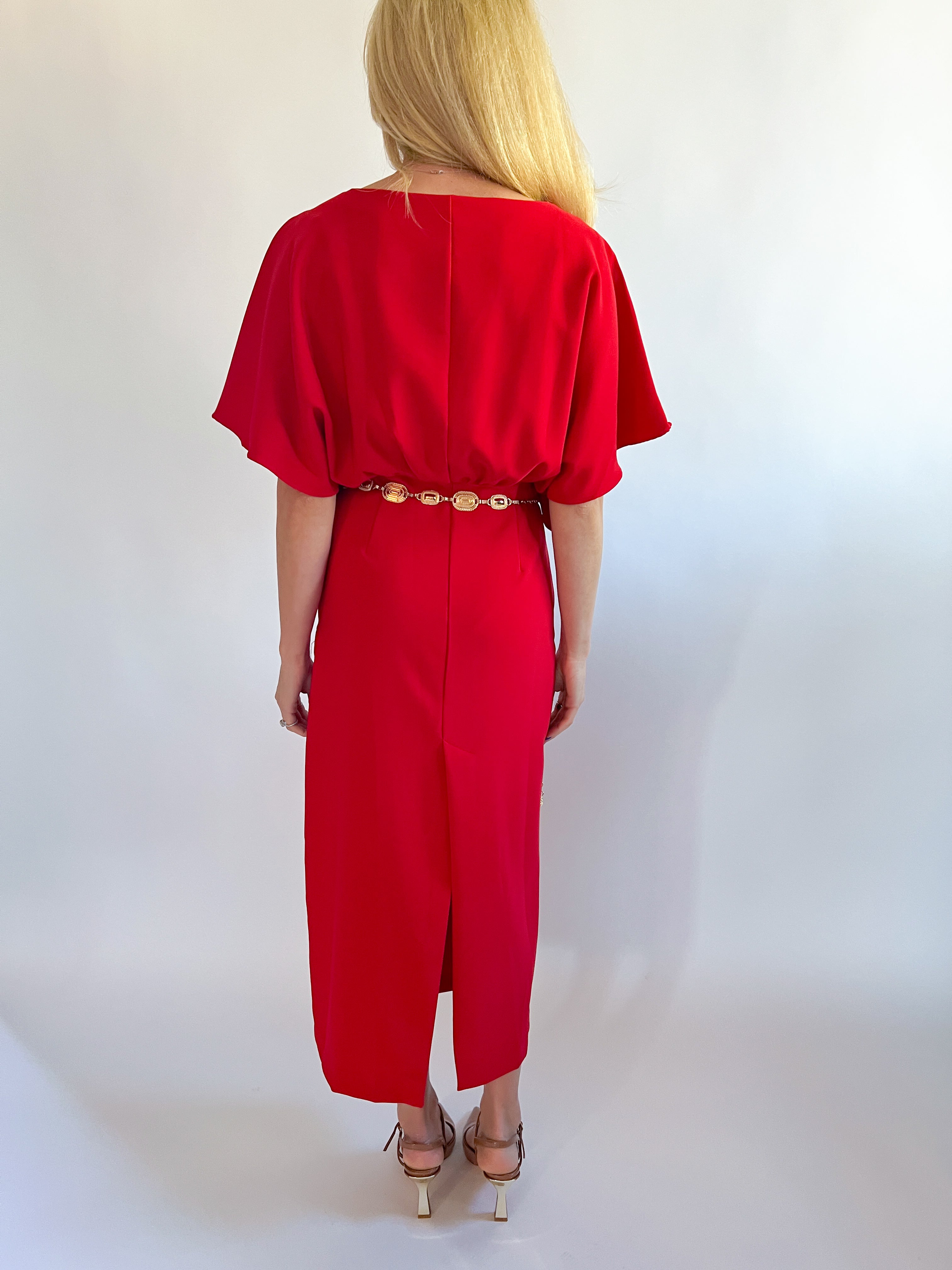 Meet the Samantha Cape Midi Dress—where dramatic flair meets everyday wearability! This show-stopping piece features an elegant cape detail that adds movement and sophistication to your look. The midi length hits at just the right spot for a polished, versatile silhouette that works for brunch dates, dinner nights, or any occasion calling for a touch of glamour. Crafted with quality in mind, this dress lets you make a statement without saying a word. Slip it on and prepare to feel confident, chic, and absolutely stunning!