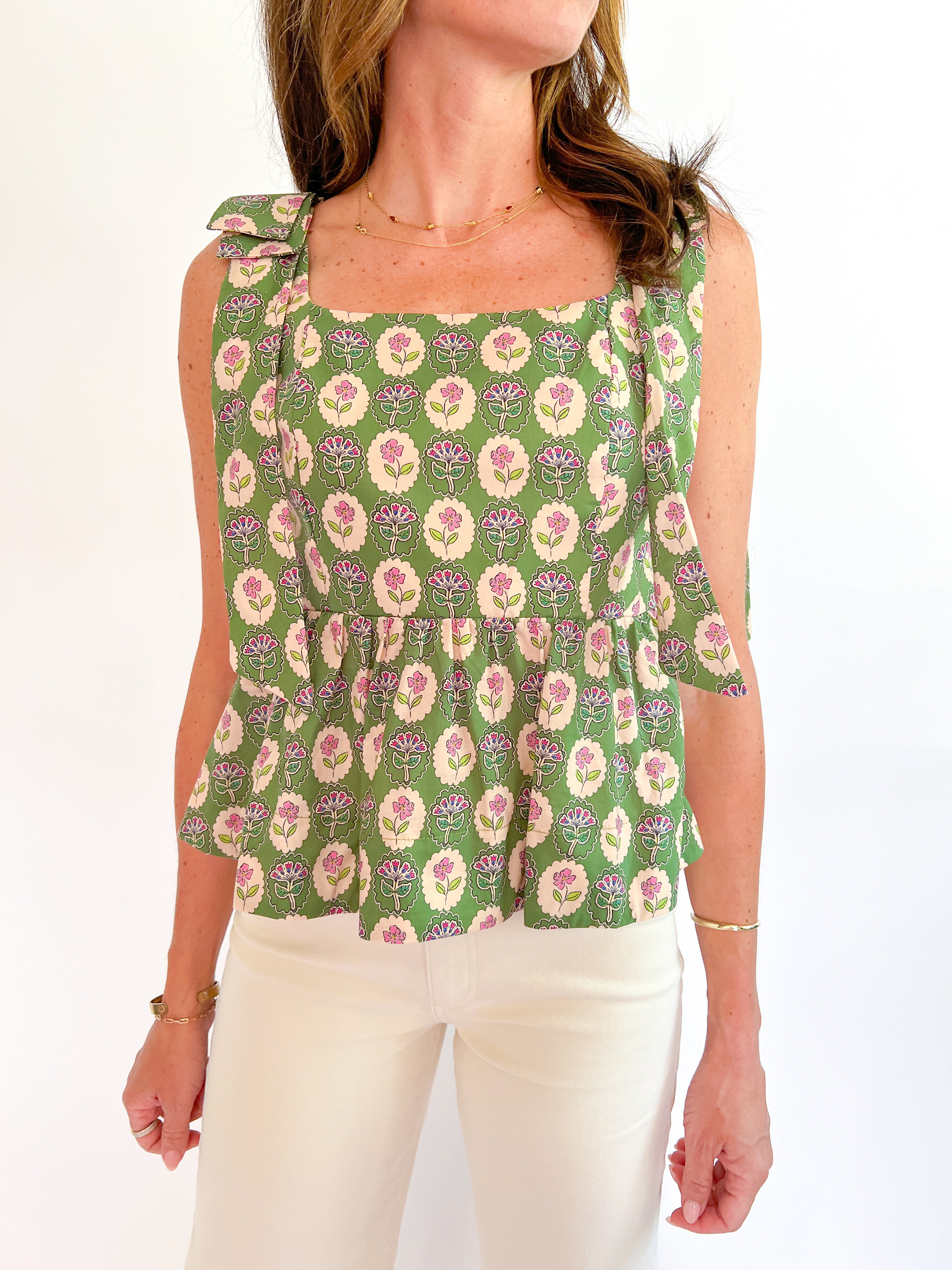 Elevate your style with our Circle Floral Print Peplum Top! This charming piece features a square neckline, delicate ruffle hem, and adorable bow tie shoulder accents. The side zipper ensures a perfect fit, while the lightweight, lined woven fabric keeps you comfortable all day. This non-sheer top adds a playful, feminine touch to any outfit!