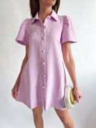 Effortless style meets playful charm with the Presley Button Down Mini Dress. This versatile piece features a classic button-down front that lets you customize your look—wear it fully buttoned for polished elegance or leave it open for a flirty, layered vibe. The mini length keeps things fresh and modern, while the structured silhouette flatters every frame. Perfect for brunch dates, casual outings, or dressing up with heels and accessories. A wardrobe essential that works as hard as you do!