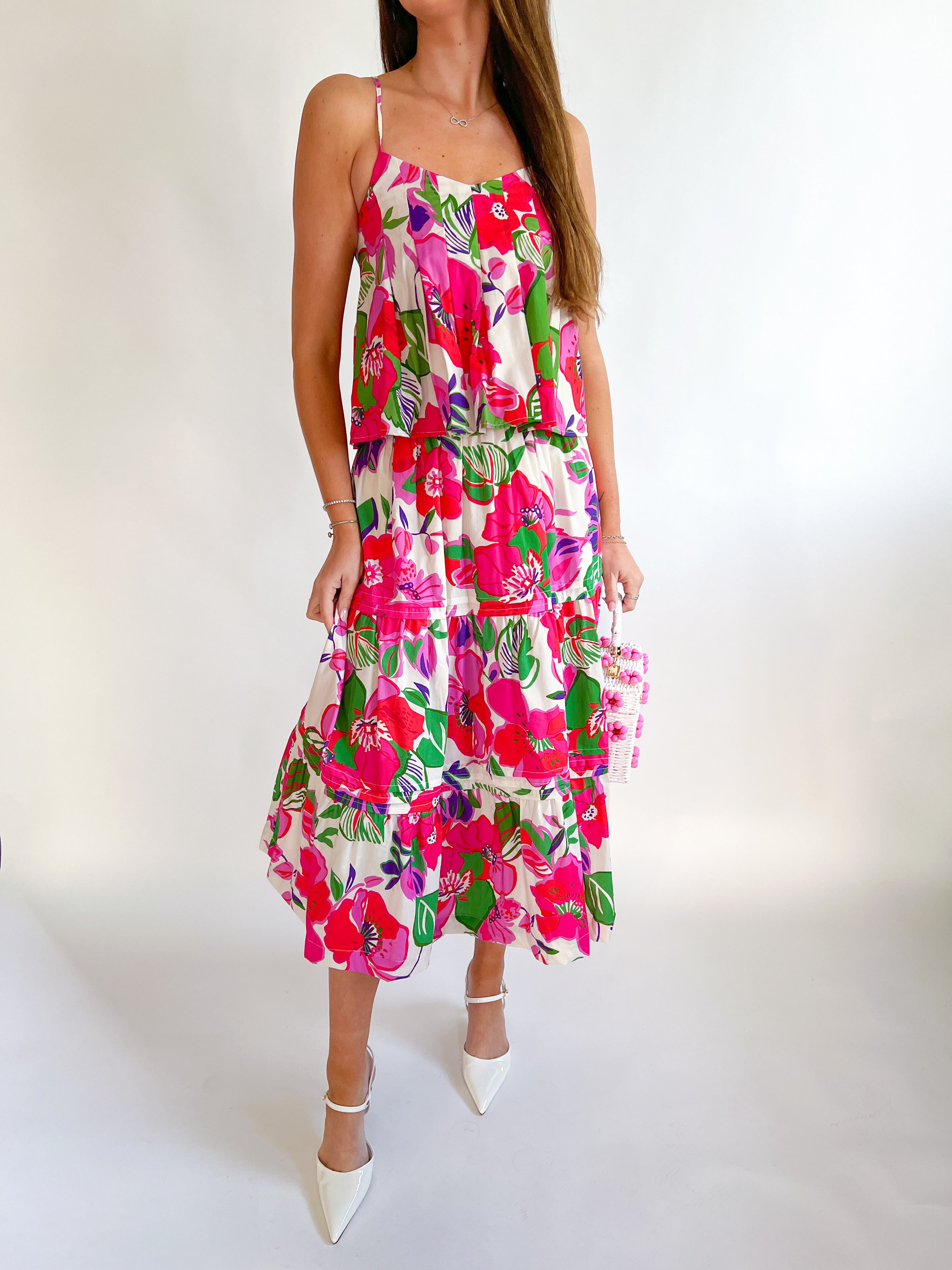 Twirl into spring with this gorgeous floral tiered maxi skirt! Featuring delicate blooms across flowing tiers, this romantic piece moves beautifully with every step. The maxi length offers effortless elegance for everything from brunch dates to evening adventures. Perfect for layering with your favorite crop top or keeping it classic with a simple tee. This is the skirt you'll reach for again and again—versatile, flattering, and absolutely swoon-worthy!