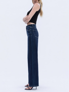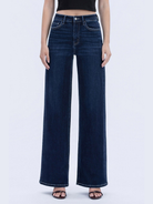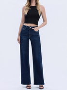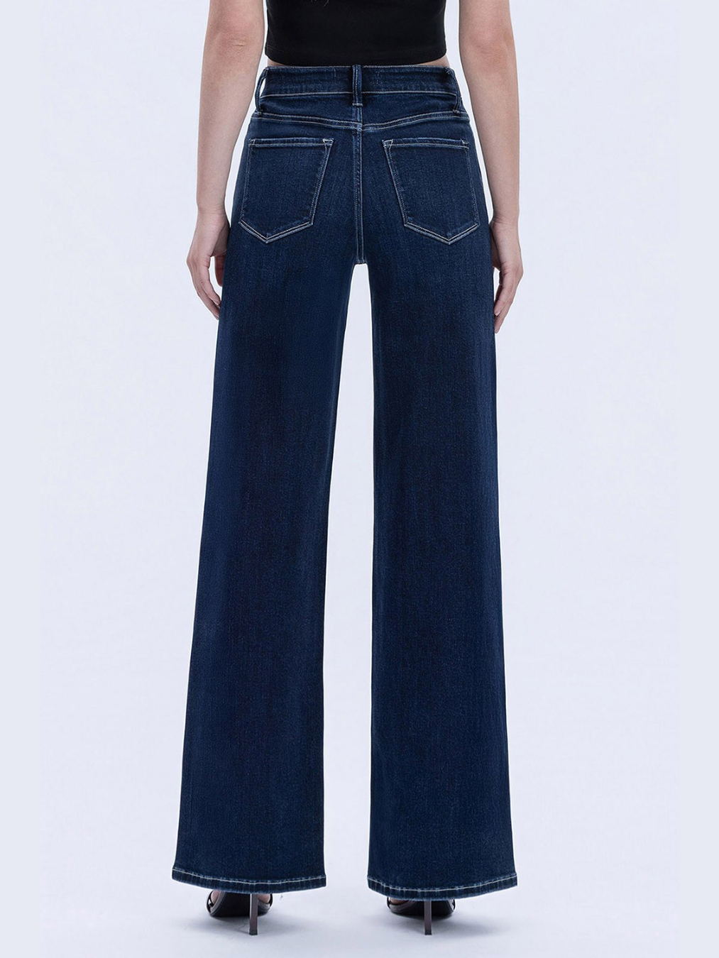 Elevate your denim game with our High Rise Dark Wash Full Length Wide Jeans. Made with comfort stretch denim, these jeans offer a smooth fit without sacrificing movement. The high rise waist and full length design provide a flattering silhouette. Perfect for everyday wear, these wide jeans are a must-have addition to your wardrobe.