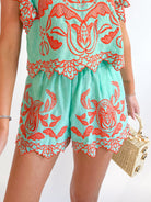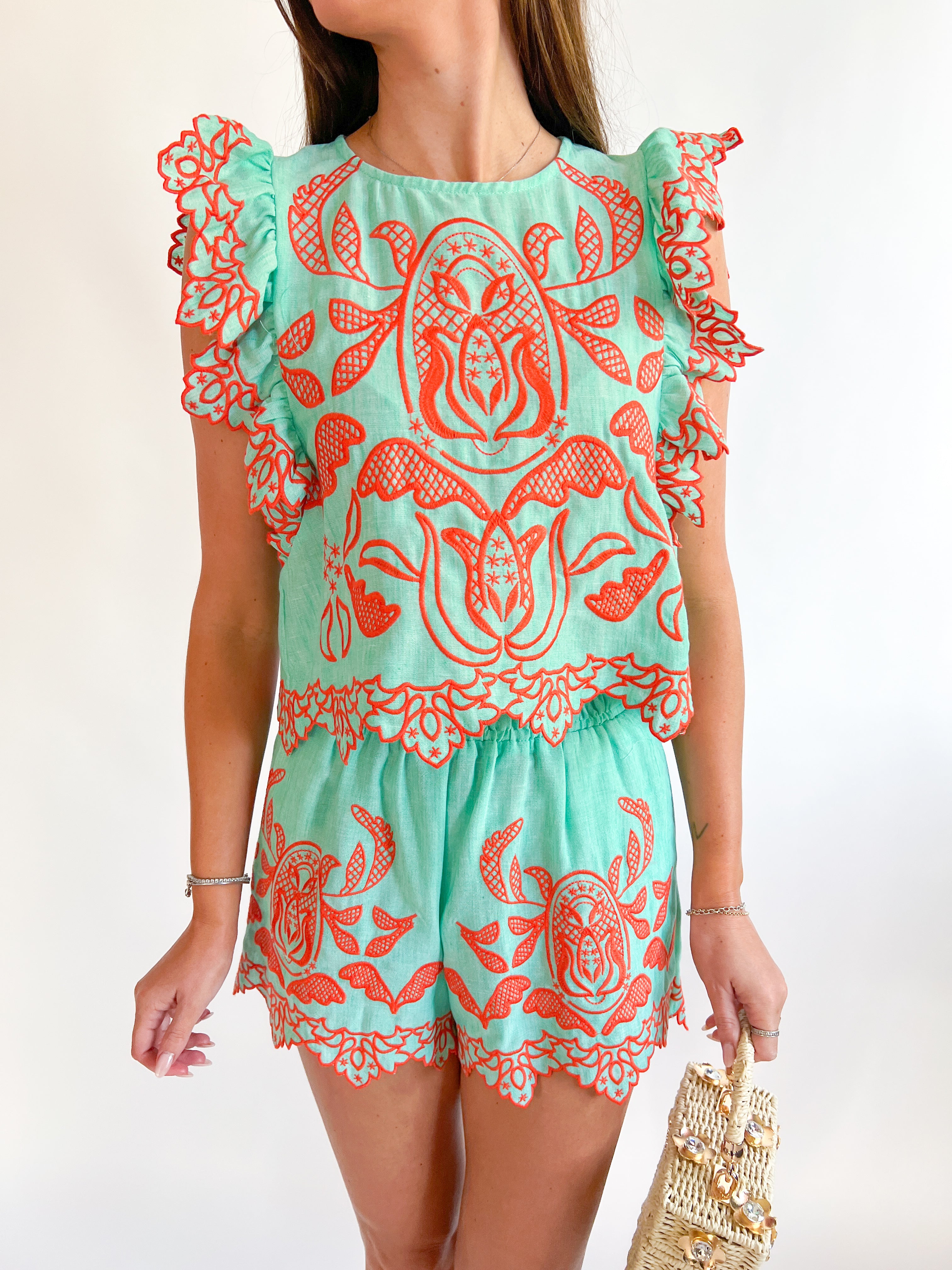 Elevate your warm-weather wardrobe with these stunning mint embroidered shorts! Featuring delicate embroidery details that add a touch of sophistication, these shorts are perfect for casual outings or dressing up your everyday look. The soft mint hue is refreshingly versatile, pairing beautifully with everything from simple tees to flowing blouses. Crafted for comfort and style, they're an instant favorite for spring and summer adventures. Make a statement with this charming piece that brings personality and polish to any outfit!