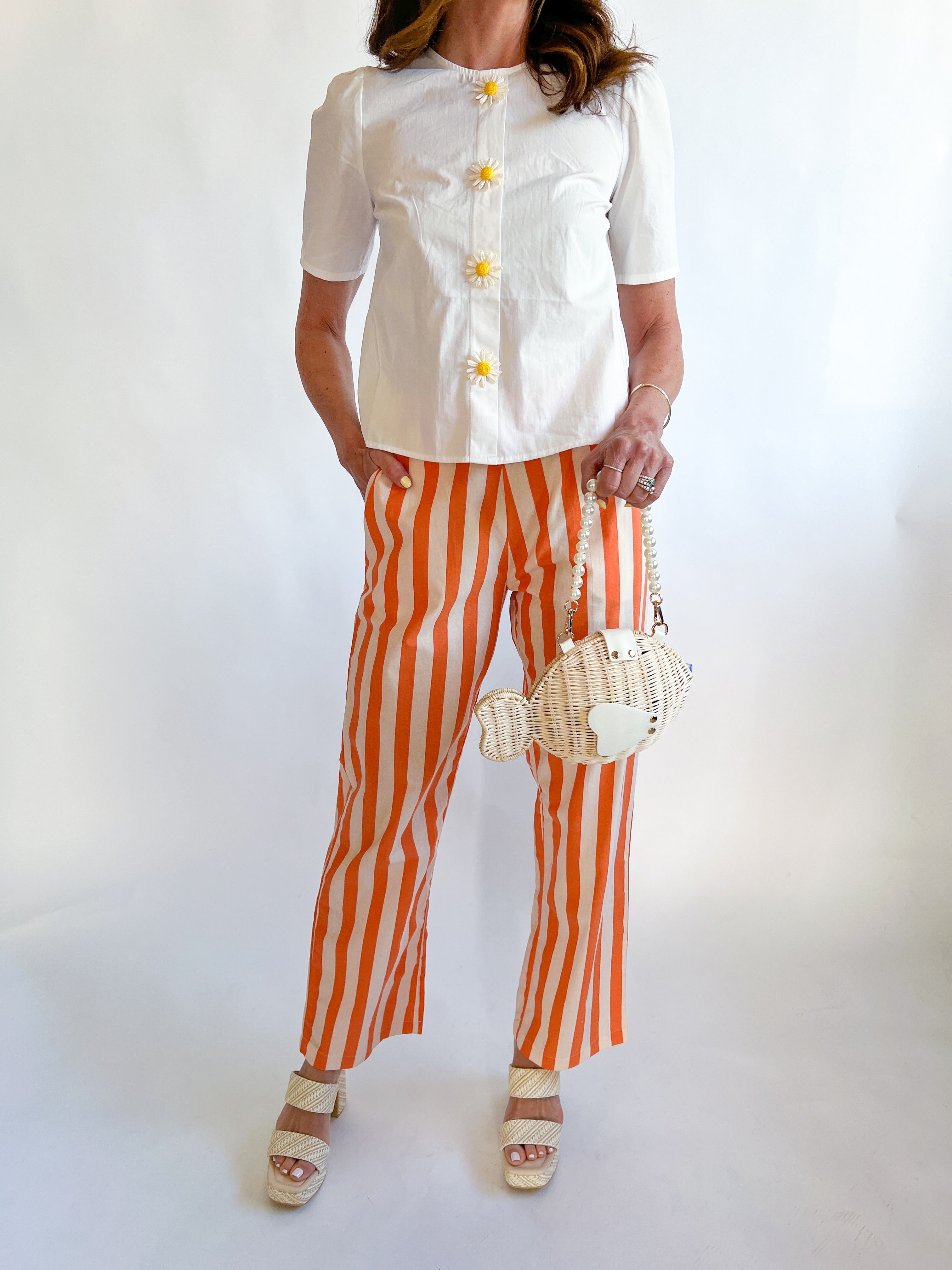 Make a bold statement with the Orange Stripe Pant! These eye-catching pants bring vibrant energy and modern flair to your everyday wardrobe. The striking stripe pattern in warm orange tones adds personality and dimension, while the tailored fit ensures you look polished and put-together. Whether you're dressing them up for a night out or keeping it casual with a simple tee, these pants are your secret weapon for standing out with confidence. Comfortable enough for all-day wear yet stylish enough to turn heads, they're the perfect addition to any fashion-forward closet!