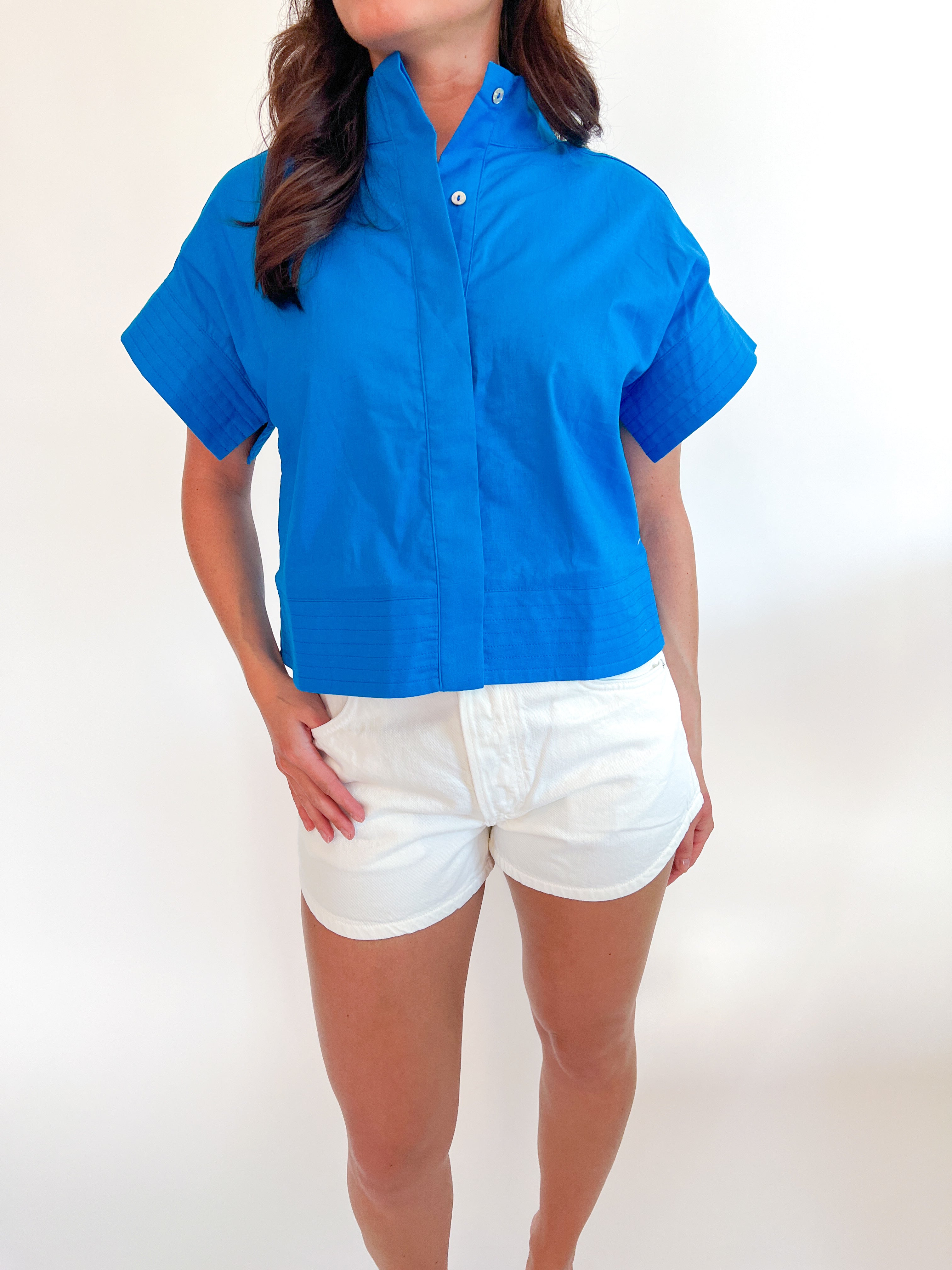Effortless elegance meets everyday comfort in this solid short sleeve stand collar top. The crisp stand collar adds a polished touch, while the relaxed short sleeves keep you cool and collected. Perfect for layering or wearing solo, this versatile piece transitions seamlessly from casual outings to weekend brunches. The clean, minimalist design pairs with everything in your wardrobe, making it a go-to staple for any season.