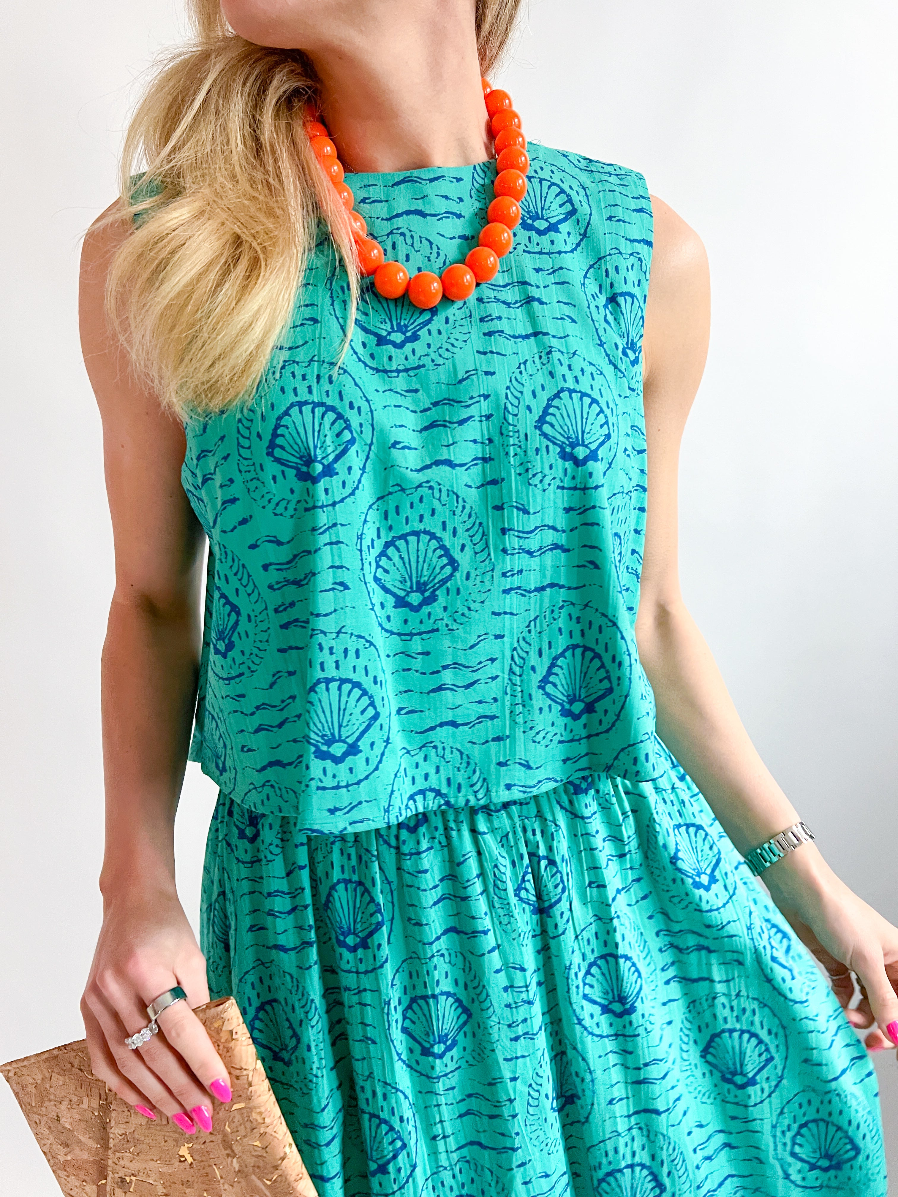 Get ready to turn heads with the Shells Sleeveless Crop Top! This chic piece showcases a gorgeous shell-inspired design that captures the essence of coastal glamour. The sleeveless cut keeps things breezy and modern, while the cropped silhouette is perfect for pairing with high-waisted bottoms to create your ultimate summer look. Whether you're layering it over a slip dress or styling it solo, this versatile top brings that perfect dose of personality and flair to any outfit. Comfortable, flattering, and absolutely swoon-worthy!