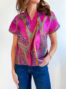 Allie Short Sleeve Vibrant Pattern Top