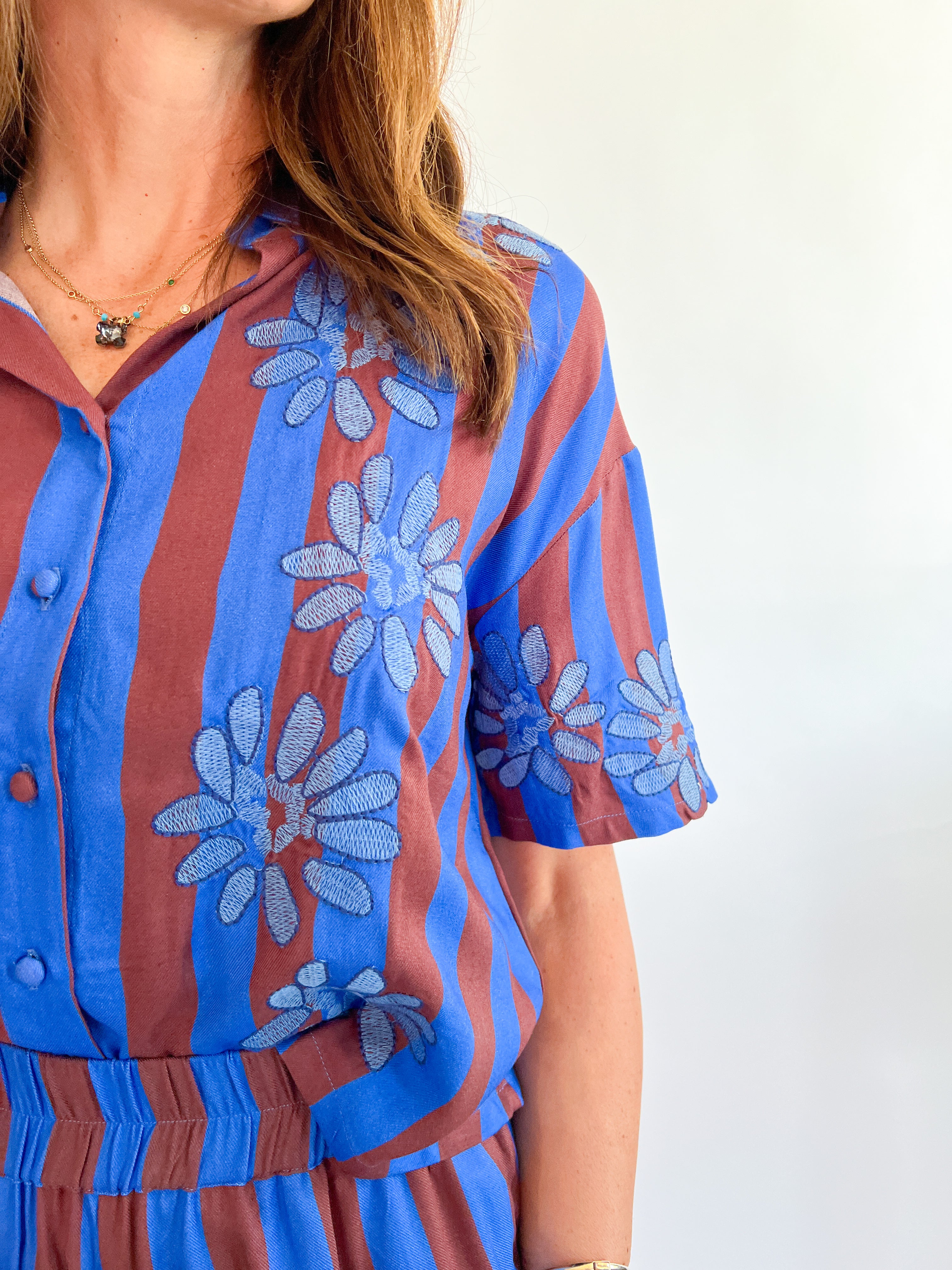 Add a splash of fun to your wardrobe with the Striped Roxy Shirt. Its bold stripes and comfortable fit make it perfect for sunny days and casual outings. Easy to pair with your favorite jeans or shorts, this shirt brings a playful yet polished touch to any look. Brighten your style and feel confident wherever you go!