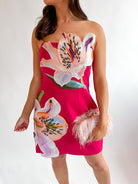 Strapless Dress 3D Floral Beaded Detail
