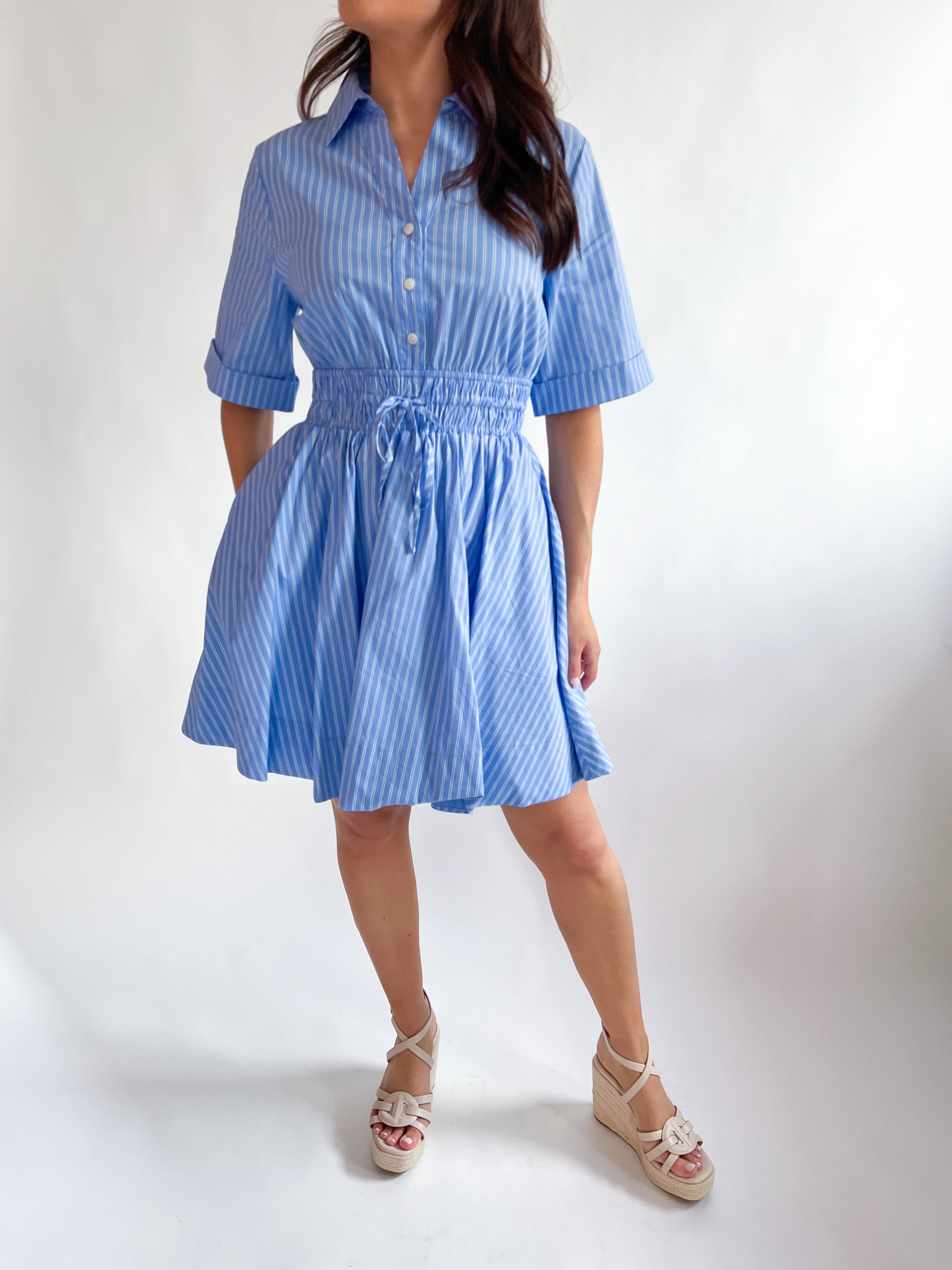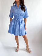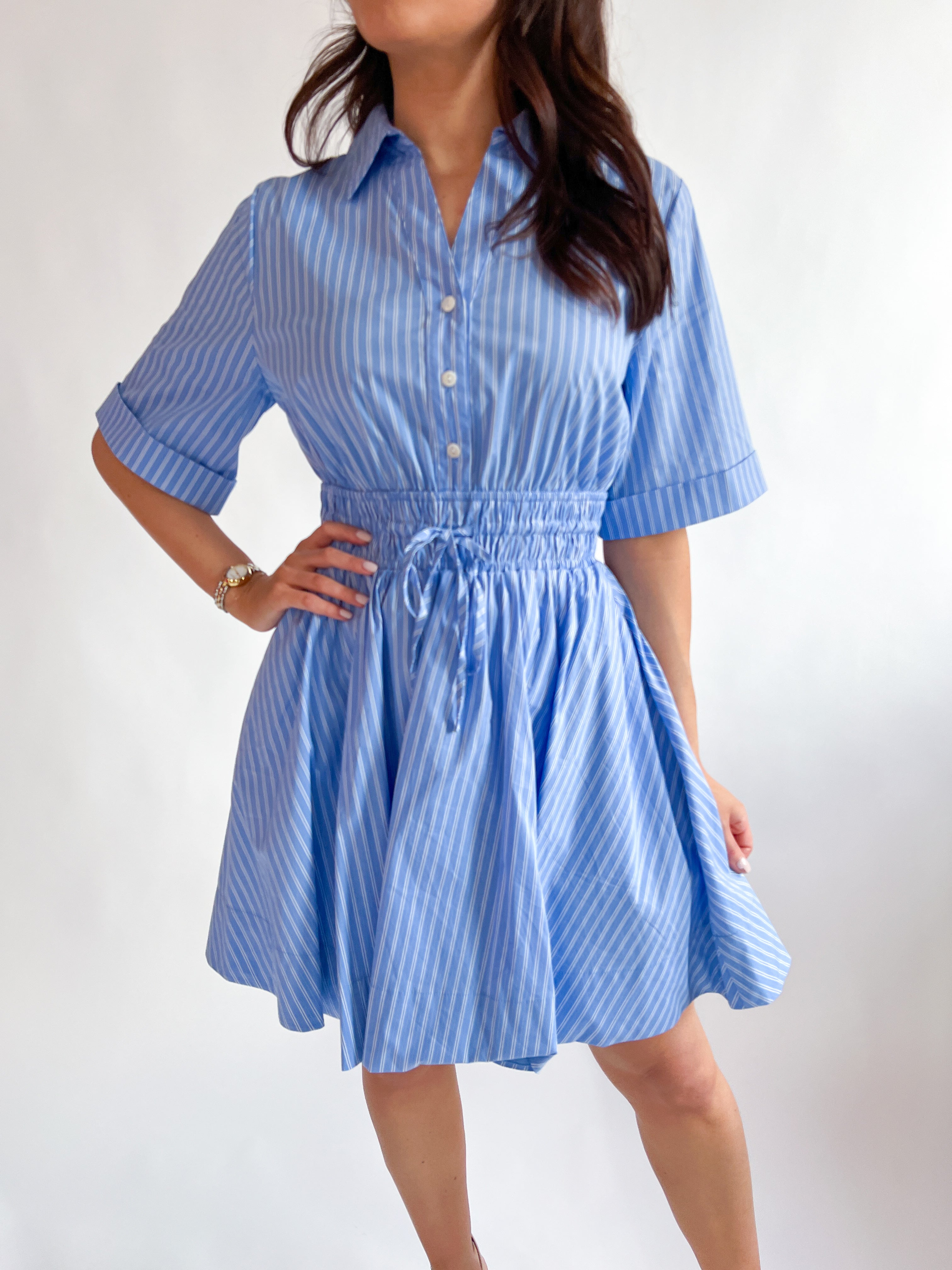 Effortless style meets everyday comfort in this charming stripe short sleeve shirt dress. Perfect for casual outings or relaxed workdays, the crisp striped pattern adds visual interest while the classic shirt silhouette keeps things timeless. Short sleeves make it ideal for warmer weather, and the dress shape flatters while allowing easy movement. Throw on your favorite sneakers for a laid-back vibe or dress it up with heels and accessories for something more polished. A versatile wardrobe essential that transitions seamlessly from day to night.