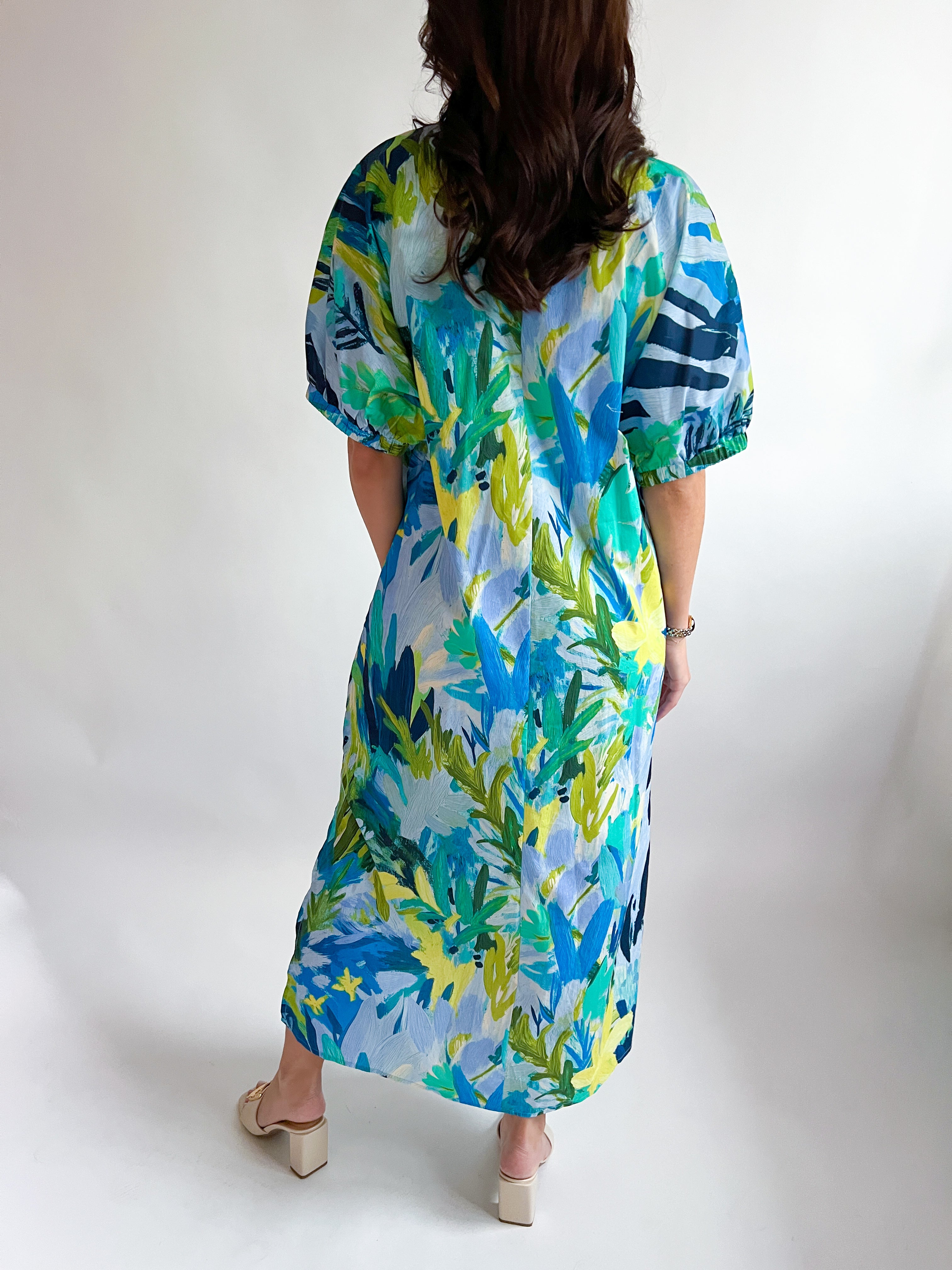 Palm Leaf Short Sleeve Midi Dress
