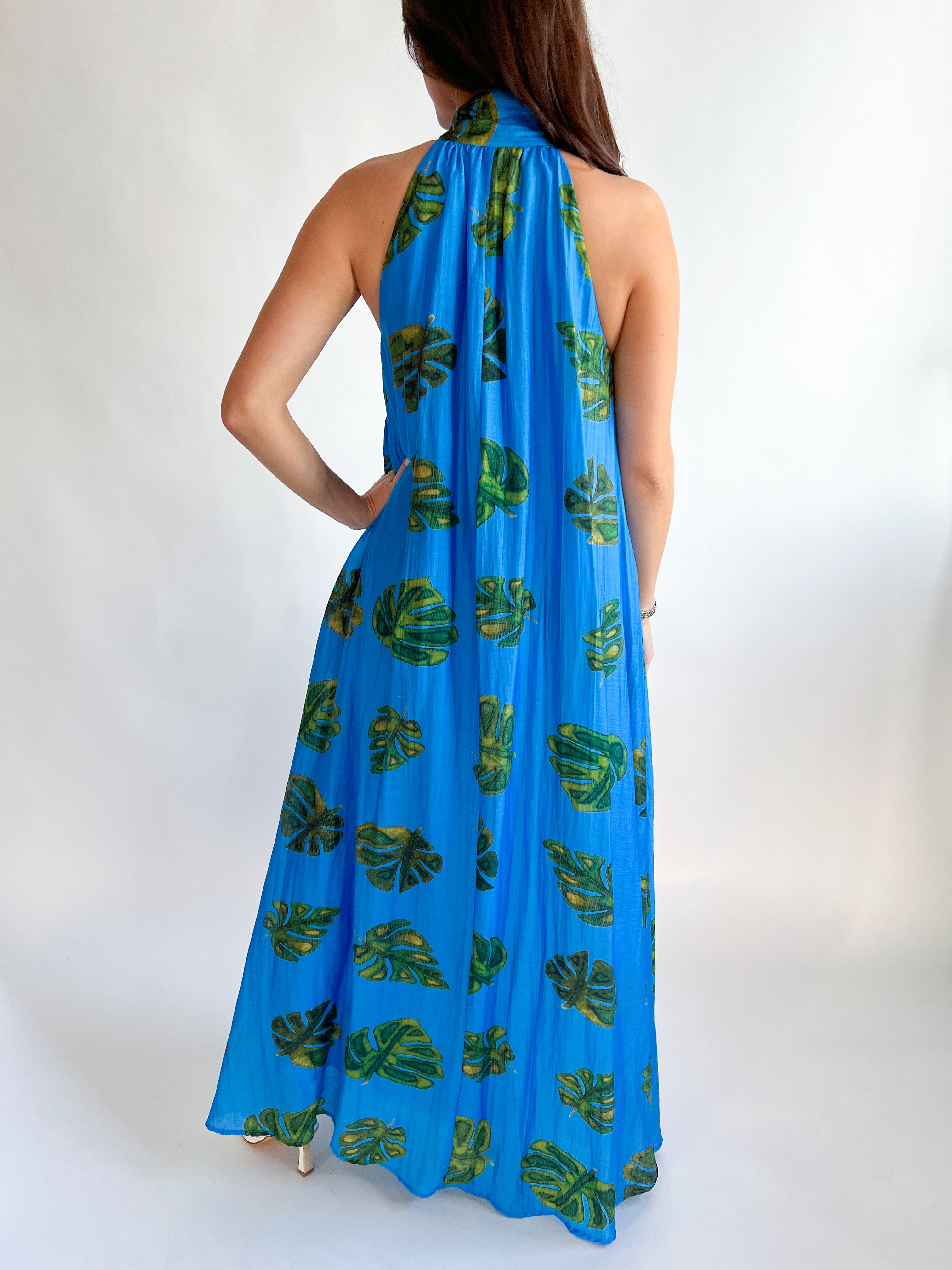 Leaf Halter Neck Maxi Dress