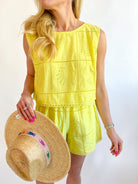 Dive into effortless tropical vibes with the Lemonade Shell Coco Top! This breezy essential features a charming shell-inspired design that captures the carefree spirit of island living. Perfect for layering over your favorite swimsuit or pairing with linen shorts, this lightweight piece keeps you cool and stylish all season long. Whether you're heading to the beach, brunch, or a casual getaway, this versatile top brings that coveted resort-ready look to every occasion. Embrace the warmth and wanderlust!