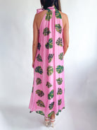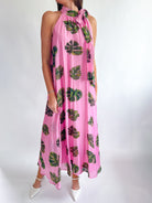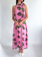 Pink Leaf Halter Neck Maxi Dress