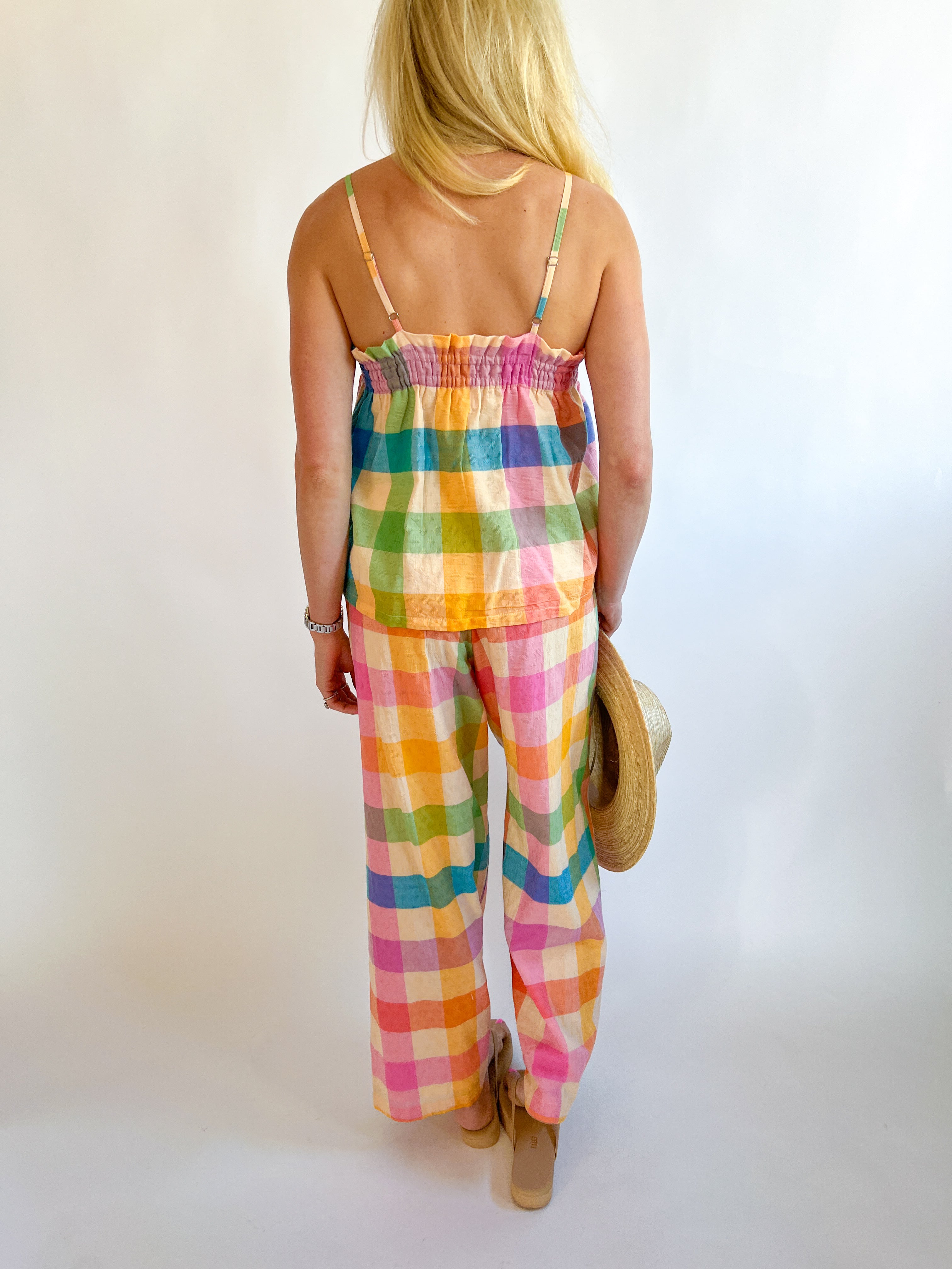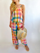 Step into style with the Rainbow Plaid Daphne Pant! These eye-catching bottoms showcase a bold rainbow plaid design that instantly elevates your everyday look. Crafted for comfort and movement, they're perfect for anyone who loves to make a statement. Pair them with a solid top to let the pattern shine, or go full-on bold with coordinating pieces from the Daphne collection. Whether you're running errands or heading out for an adventure, these vibrant pants bring personality and flair to every moment. Embrace your colorful side and turn heads wherever you go!