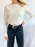 Shine bright in our Mallory Sparkle Long Sleeve Top! This dazzling piece is designed to make you feel confident and fabulous with its eye-catching sparkle detail. The long sleeves provide versatile coverage while the shimmering embellishments add just the right amount of glamour to any occasion. Perfect for date nights, celebrations, or whenever you want to feel extra special, this top transforms any look into something truly memorable. Layer it over basics or wear it as a statement piece – either way, you'll love the way it catches the light and turns heads. Elevate your style game and grab this showstopper today!