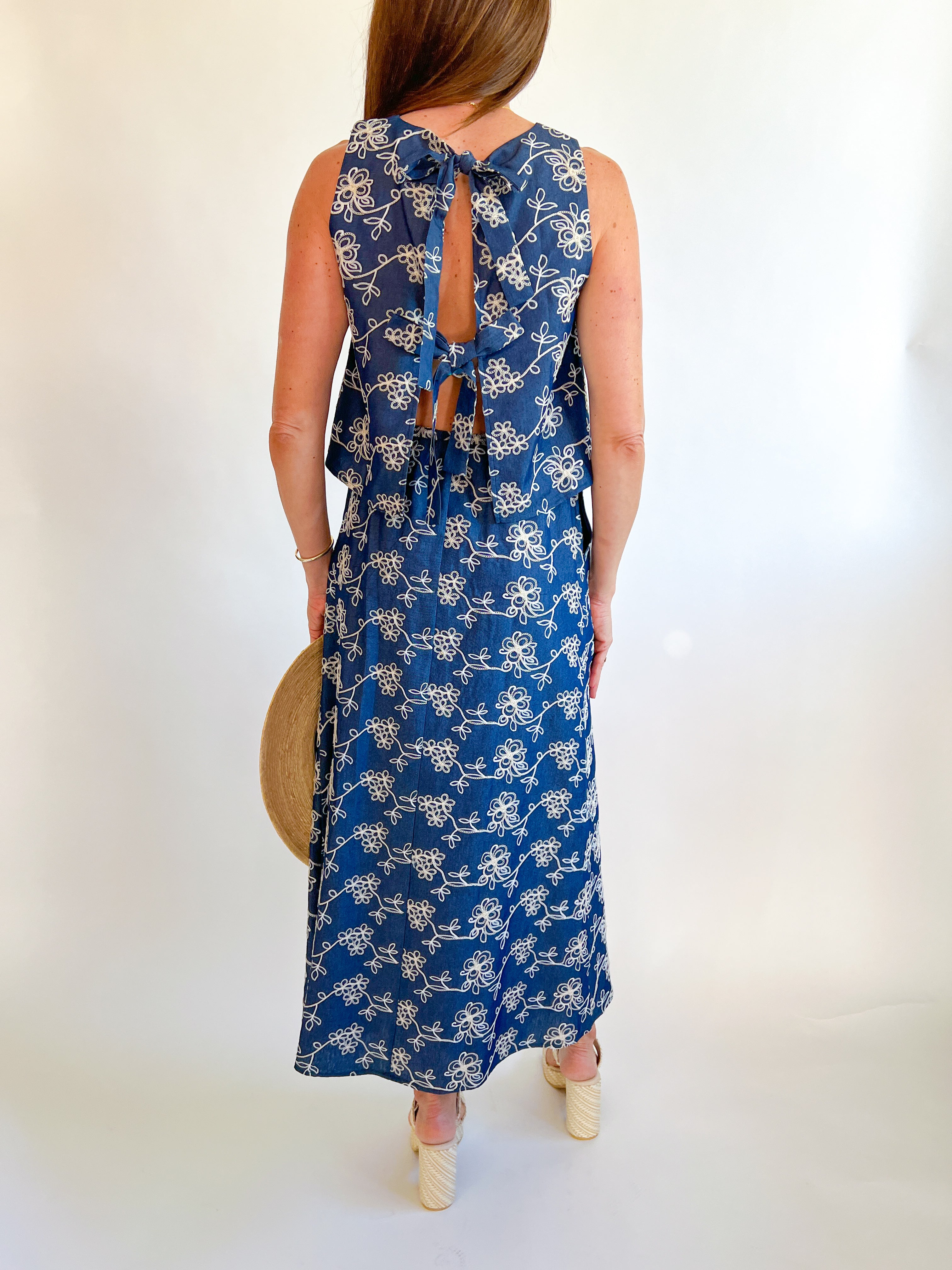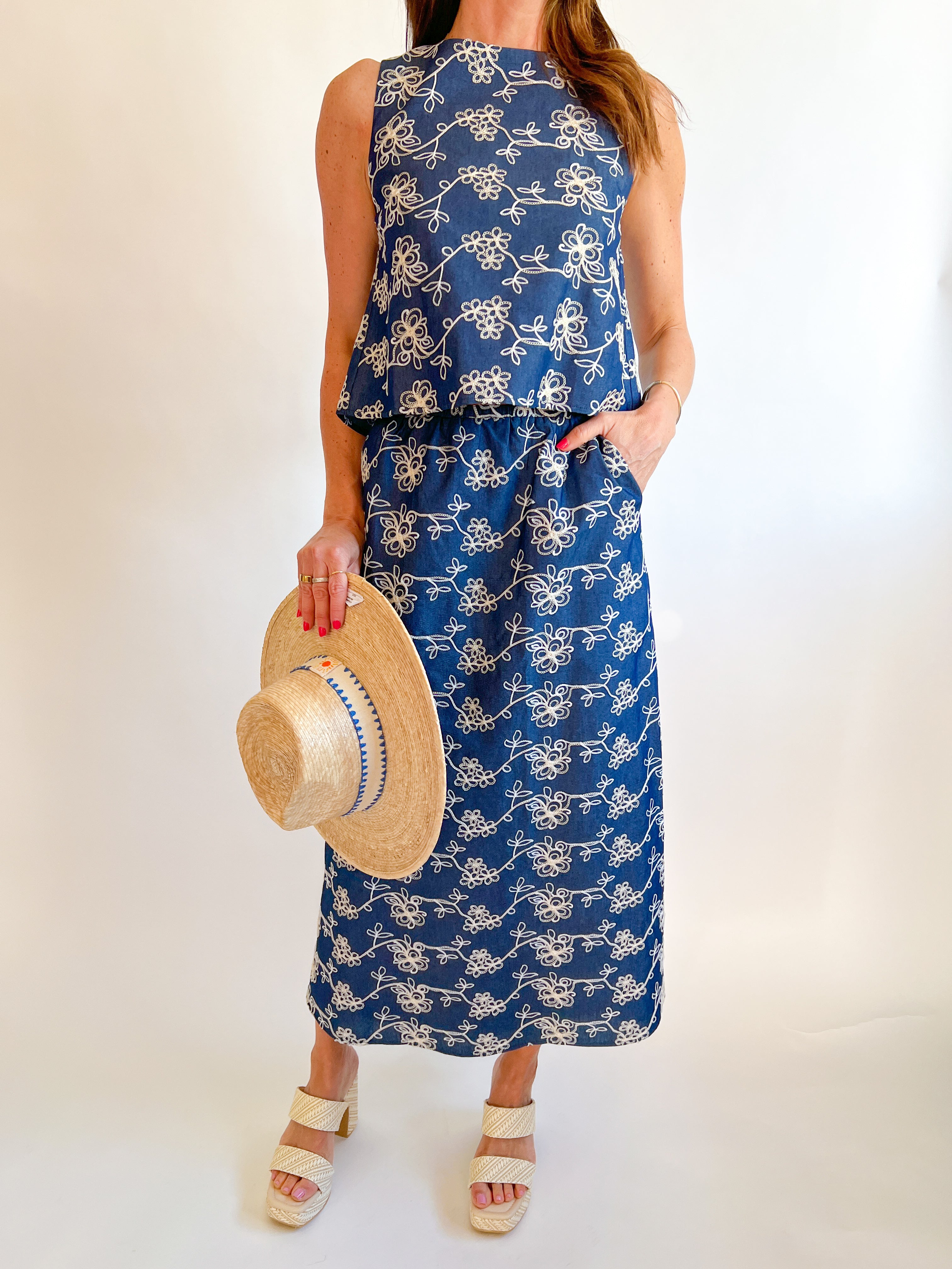 Elevate your wardrobe with this stunning indigo embroidered set, featuring a coordinated top and skirt in rich, deep tones. The intricate embroidery detailing adds artisanal charm and visual interest, making it perfect for special occasions or elevated everyday wear. The coordinated pairing takes the guesswork out of styling, while the classic indigo hue ensures versatility and timeless appeal. Crafted for comfort and sophistication, this set is an effortless way to make a polished impression.