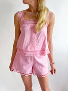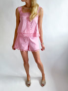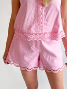 Sweet and playful, these strawberry scallop embroidered hem shorts bring a burst of charm to your warm-weather wardrobe. The delicate scalloped edges feature adorable strawberry embroidery that adds a whimsical touch, perfect for casual outings or weekend adventures. Crafted for comfort and style, they're an instant favorite for anyone who loves fruit-inspired fashion with personality. Pair them with your favorite tee or crop top for an effortlessly cute look that celebrates your fun side.