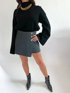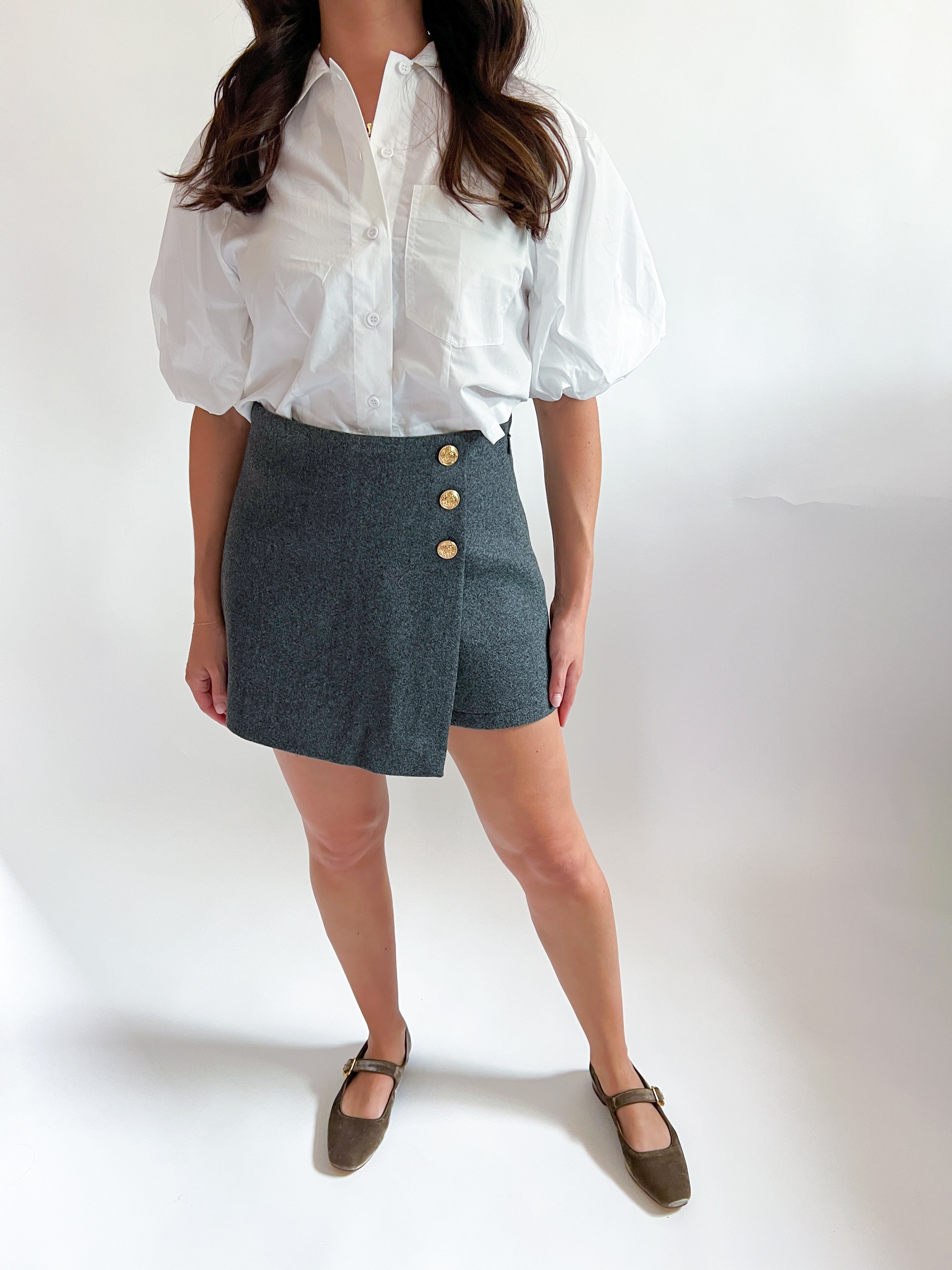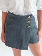 The Kourtney Mini Skort is a stylish solid woven piece designed for both comfort and flair. It features a charming three-button closure on the side, complemented by a smooth side zipper for easy wear. With built-in shorts, this skort offers added coverage and freedom of movement, making it perfect for any fun outing or casual day. Enjoy the blend of practicality and trendy design in one versatile wardrobe staple!