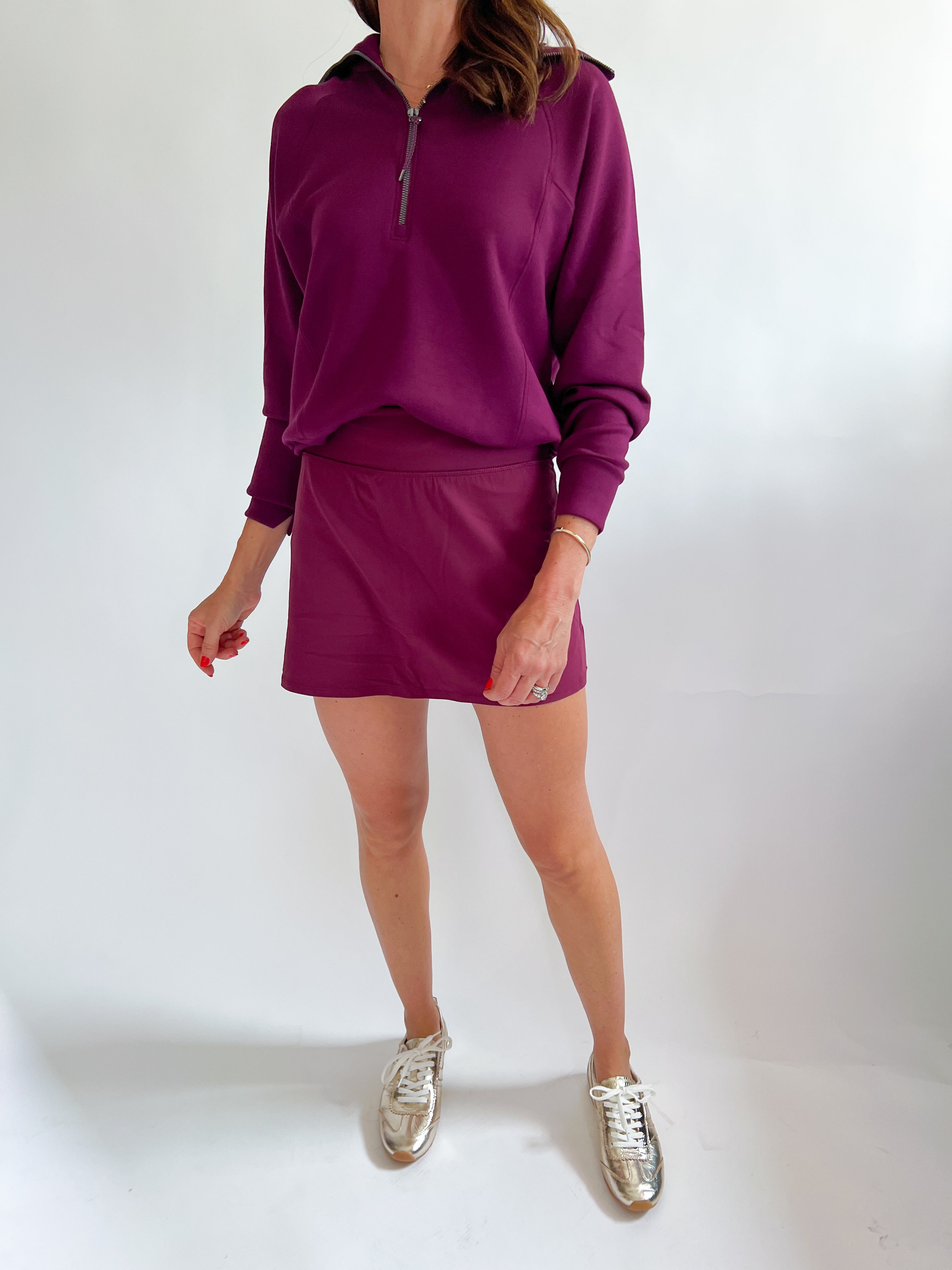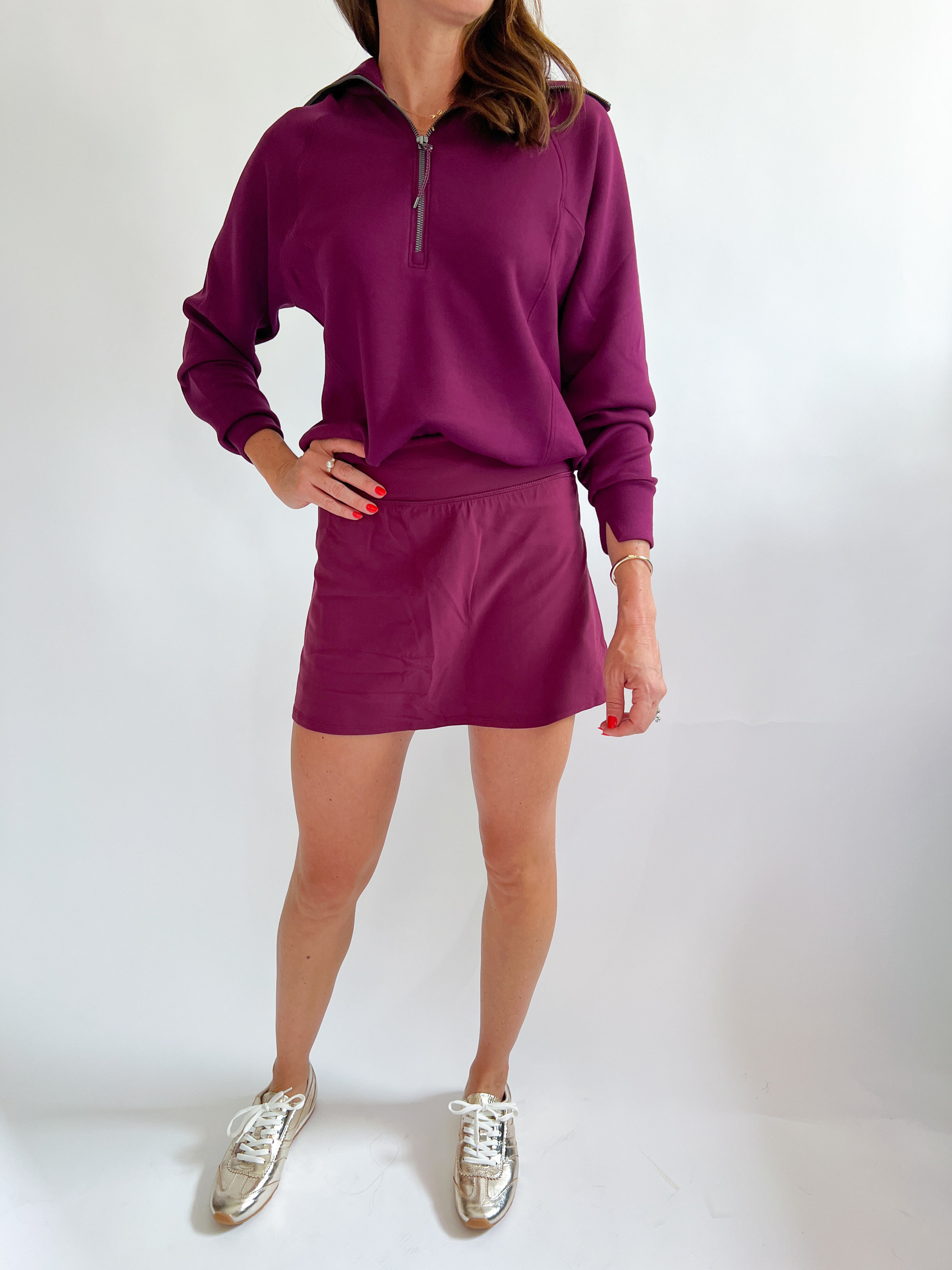 Our Plum Berry Skort is made from buttery-soft, lightweight performance fabric that gently smooths. Breathable, sweat-wicking, and crafted with 4-way stretch, this active style features built-in, center-seam-free shorts with side pockets to store your phone, keys, and other essentials while you're out and about. This skort is your go-to for before, during, and after your low-intensity workouts like pilates or yoga.