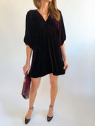 The Padma Dress is a stunning mini-length piece crafted from luxurious velvet. Its flattering V-neckline adds an elegant touch, making it perfect for turning heads at any event. Feel glamorous and comfortable all evening in this beautiful standout dress!