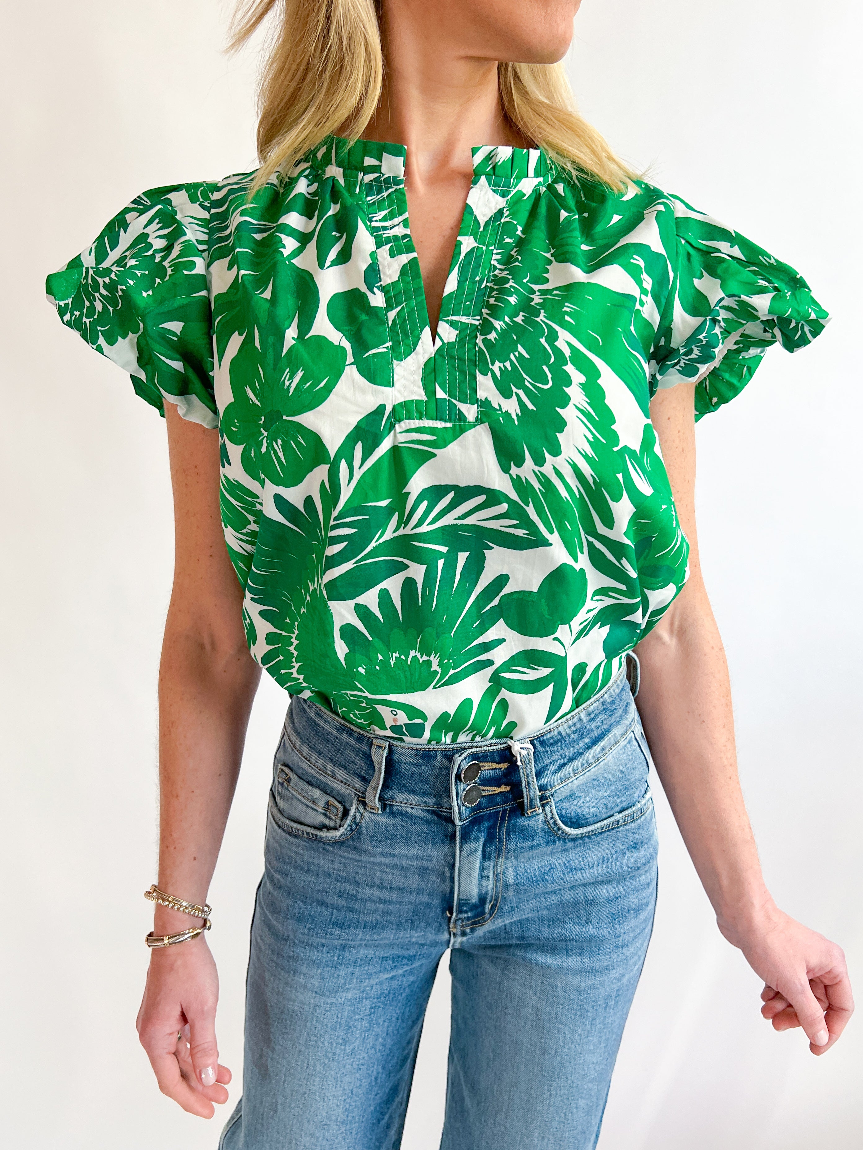 Masey Floral Kent Split Neck Top