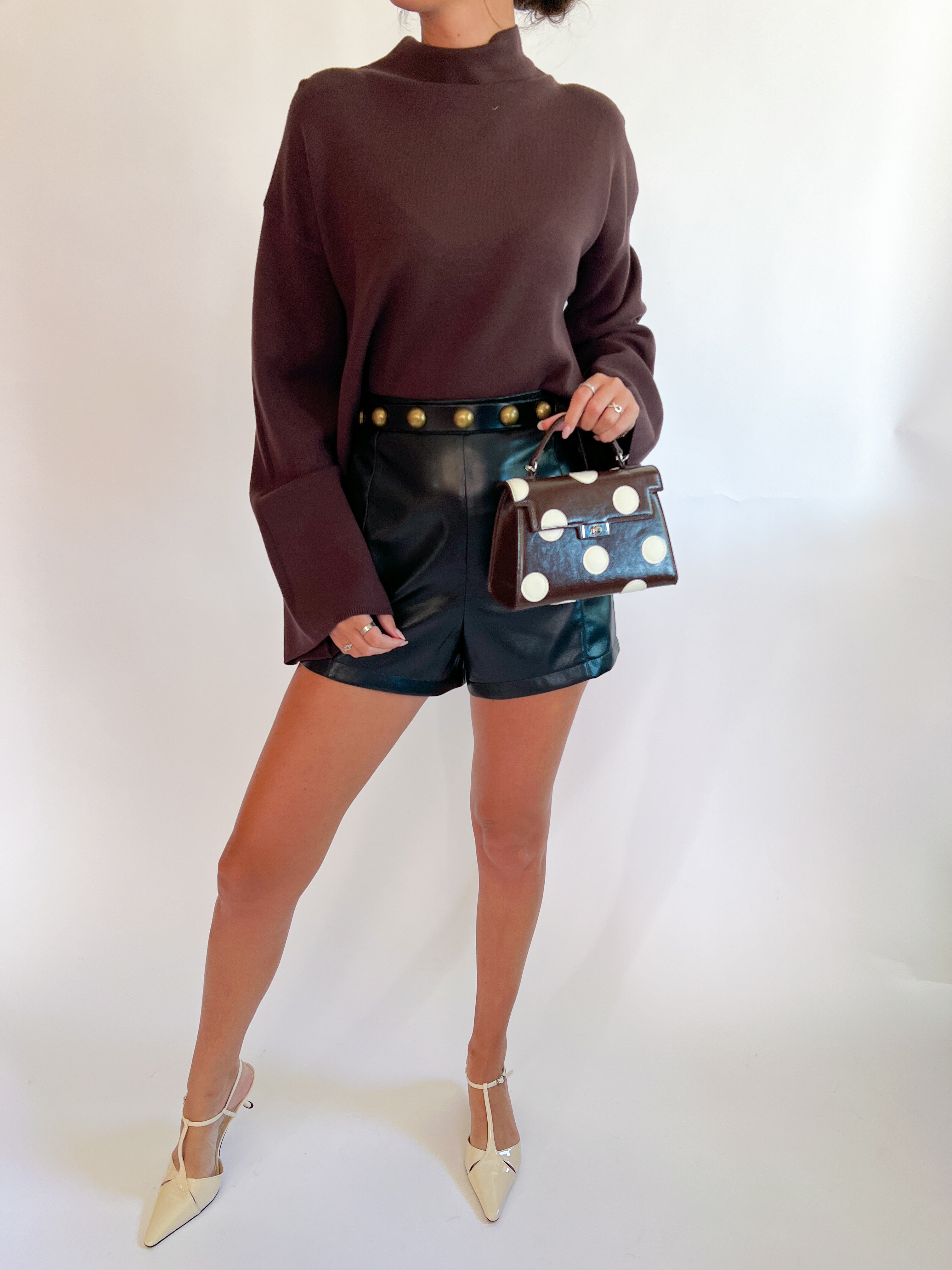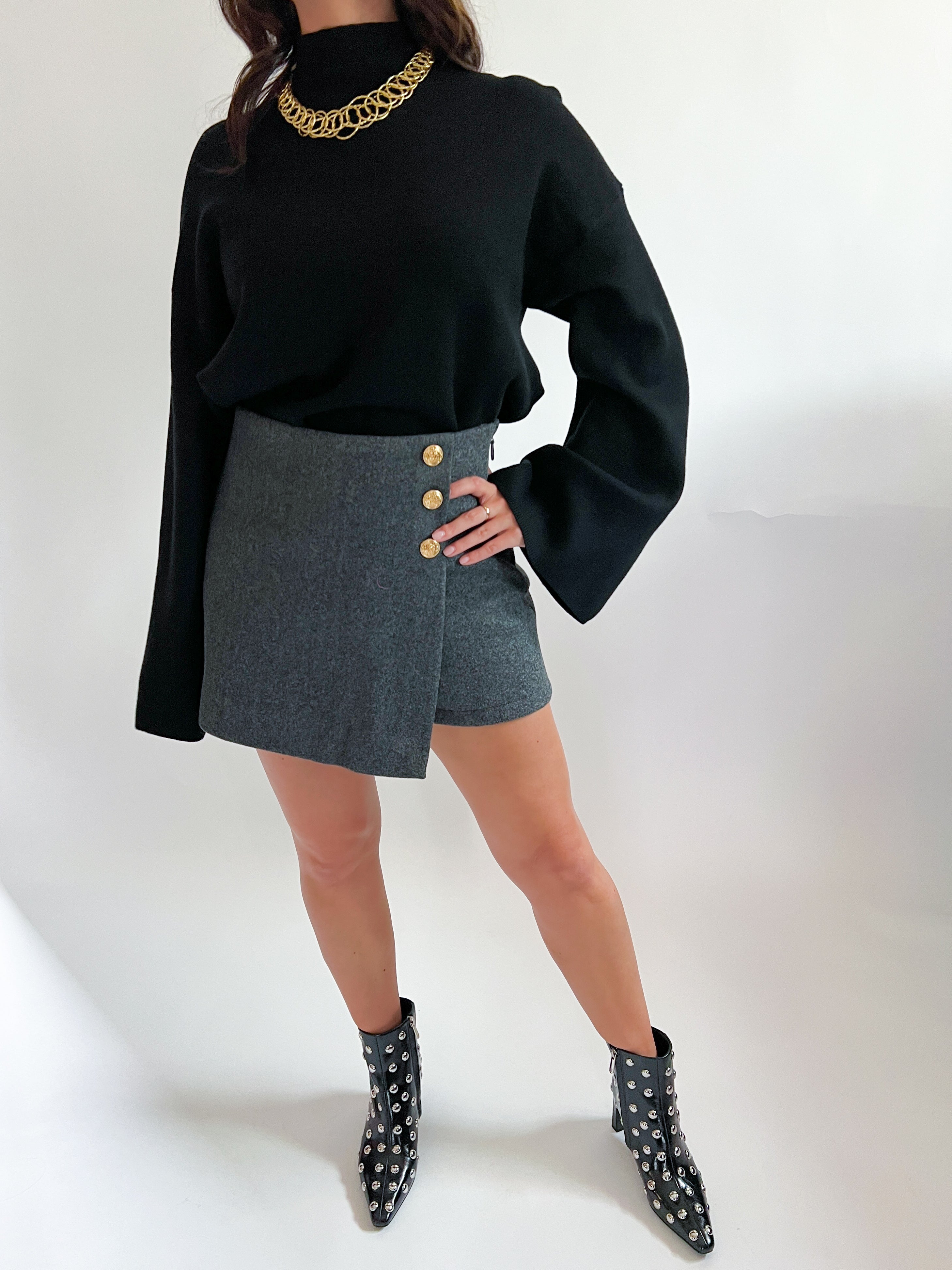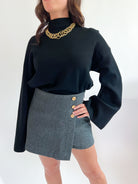 The Chuck Turtleneck Sweater combines cozy knit fabric with a stylish flared long sleeve design. Featuring a classic turtleneck and small ribbed hems, this sweater adds a playful yet polished touch to your wardrobe. Perfect for staying warm while looking effortlessly chic!
