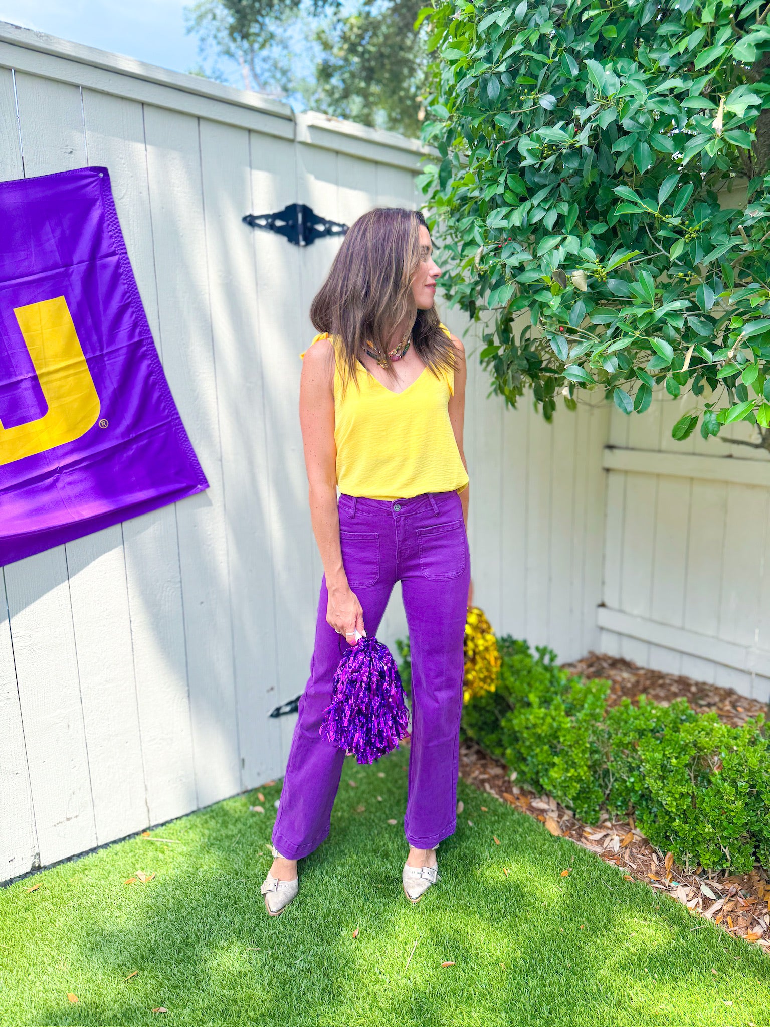 Stay cool and stylish on game day with the Airflow Game Day Cami. This lightweight tank features trendy tie shoulders for a fun, adjustable fit. Available in three vibrant colors, it’s perfect for showing your team spirit while keeping comfortable all day long.