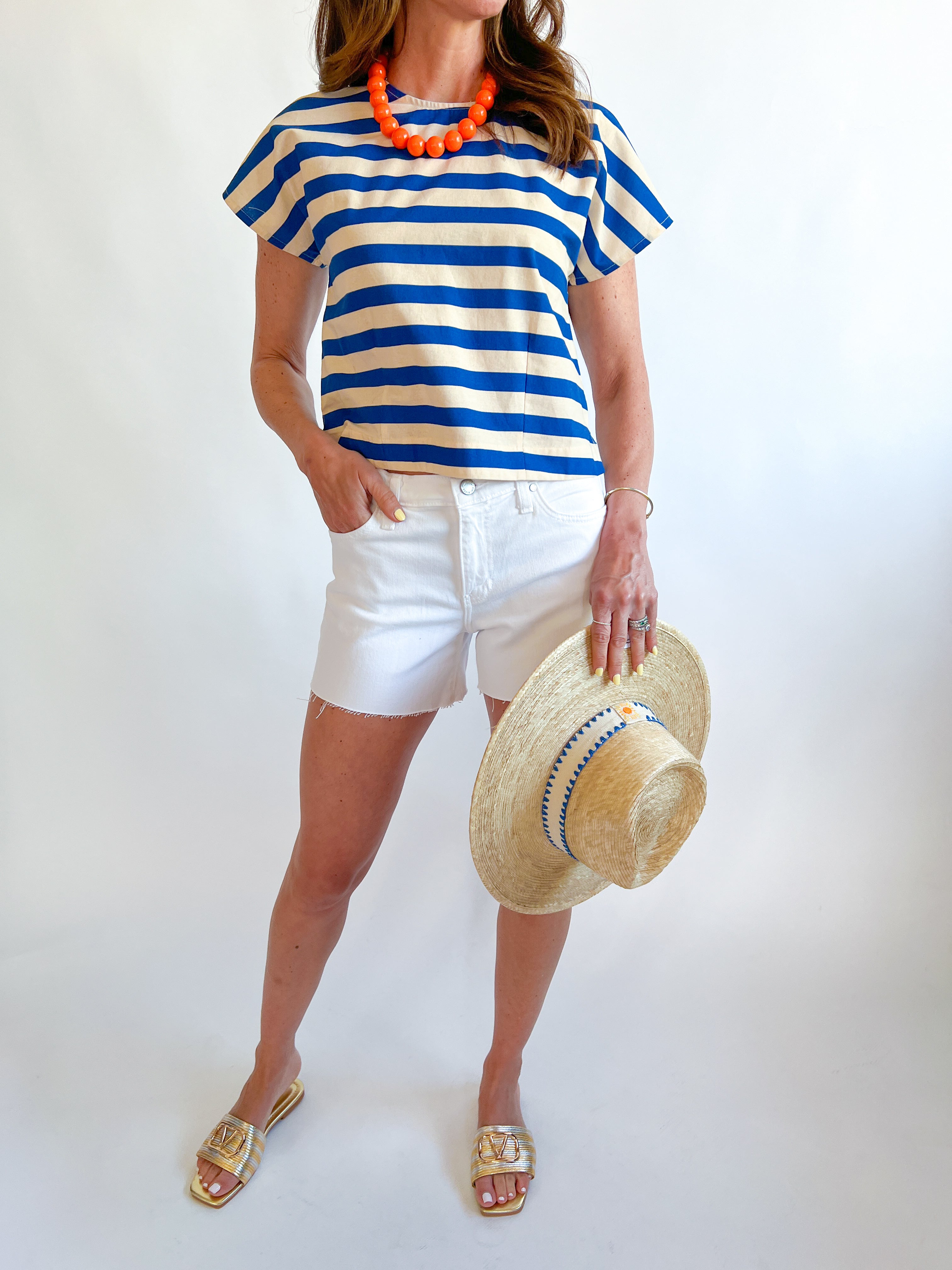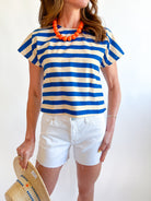 Effortless style meets comfort in this charming blue stripe short sleeve top! Perfect for casual days or dressing up with your favorite bottoms, this versatile piece features crisp stripes that add visual interest to any outfit. The relaxed fit and breathable fabric make it ideal for warm weather, while the classic stripe pattern ensures you'll reach for it again and again. Whether you're running errands or meeting friends, this top delivers that easy, put-together look you love.