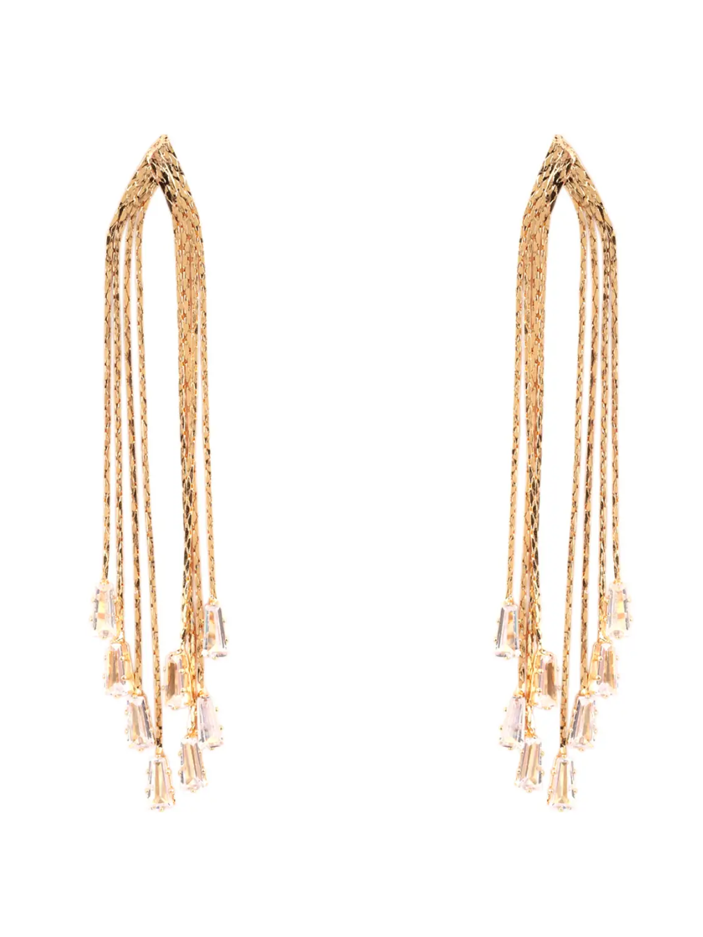 Sparkle and shine with the Metal Rhinestone Post Fringe Earring! These dazzling beauties feature shimmering rhinestones paired with delicate fringe details that catch the light with every move. The secure post backing ensures all-day comfort, whether you're heading to a special event or elevating your everyday style. From cocktail parties to date nights, these earrings deliver that perfect touch of glamour and personality. Get ready to turn heads!