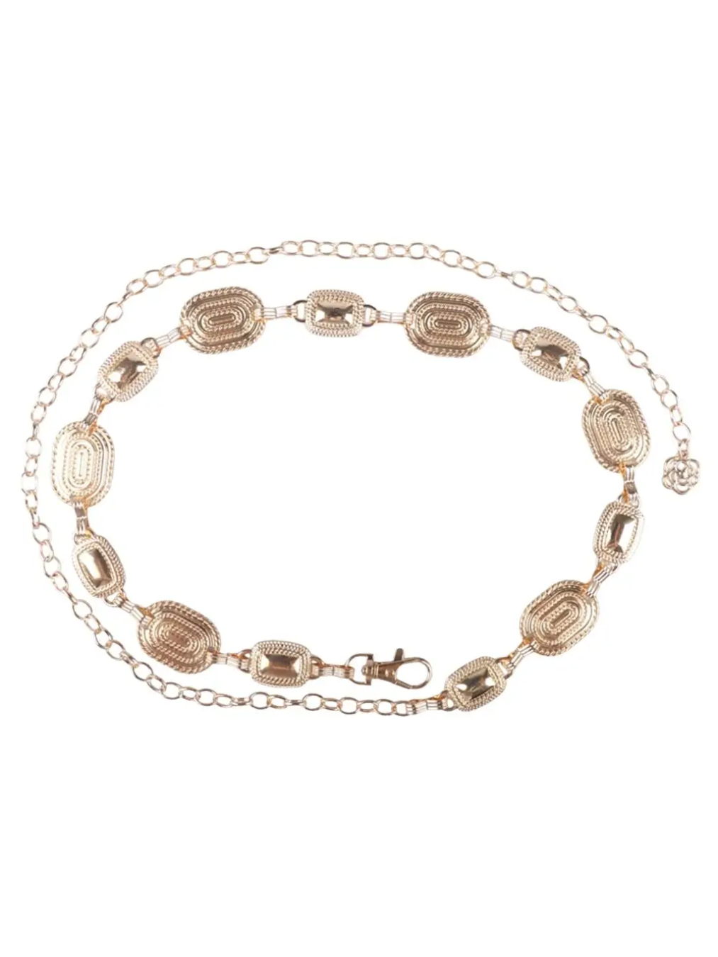 Elevate your style with this stunning gold oval metal mixed link chain belt! Featuring a dynamic blend of link styles that catch the light beautifully, this versatile accessory instantly transforms any outfit. Whether you're cinching a dress, layering over a cardigan, or adding edge to your casual look, this statement piece delivers effortless sophistication. The quality metal construction ensures durability while maintaining that luxe, polished finish. Perfect for adding that extra touch of glamour to your wardrobe!