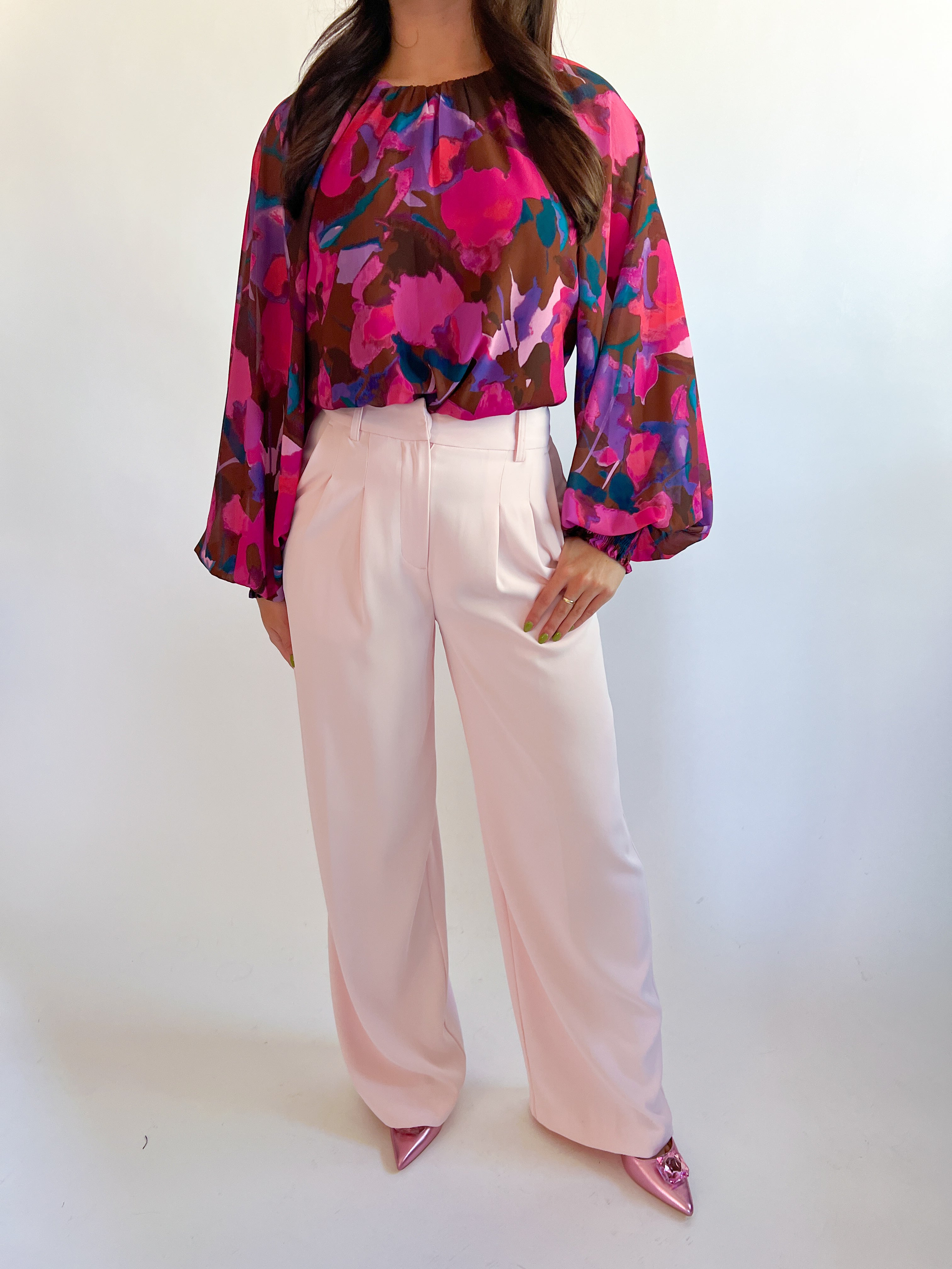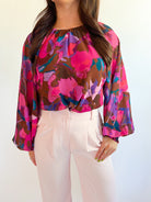 Embrace the season with a bold twist in this stunning abstract print long sleeve blouse! Featuring vibrant pink hues against an artistic fall-inspired design, this piece brings contemporary flair to your autumn wardrobe. The comfortable long sleeves offer versatility for layering, while the eye-catching print makes it perfect for standing out at any gathering. Whether you're dressing up for a night out or keeping it casual, this blouse effortlessly transitions from day to night. A must-have statement piece that celebrates color and creativity!