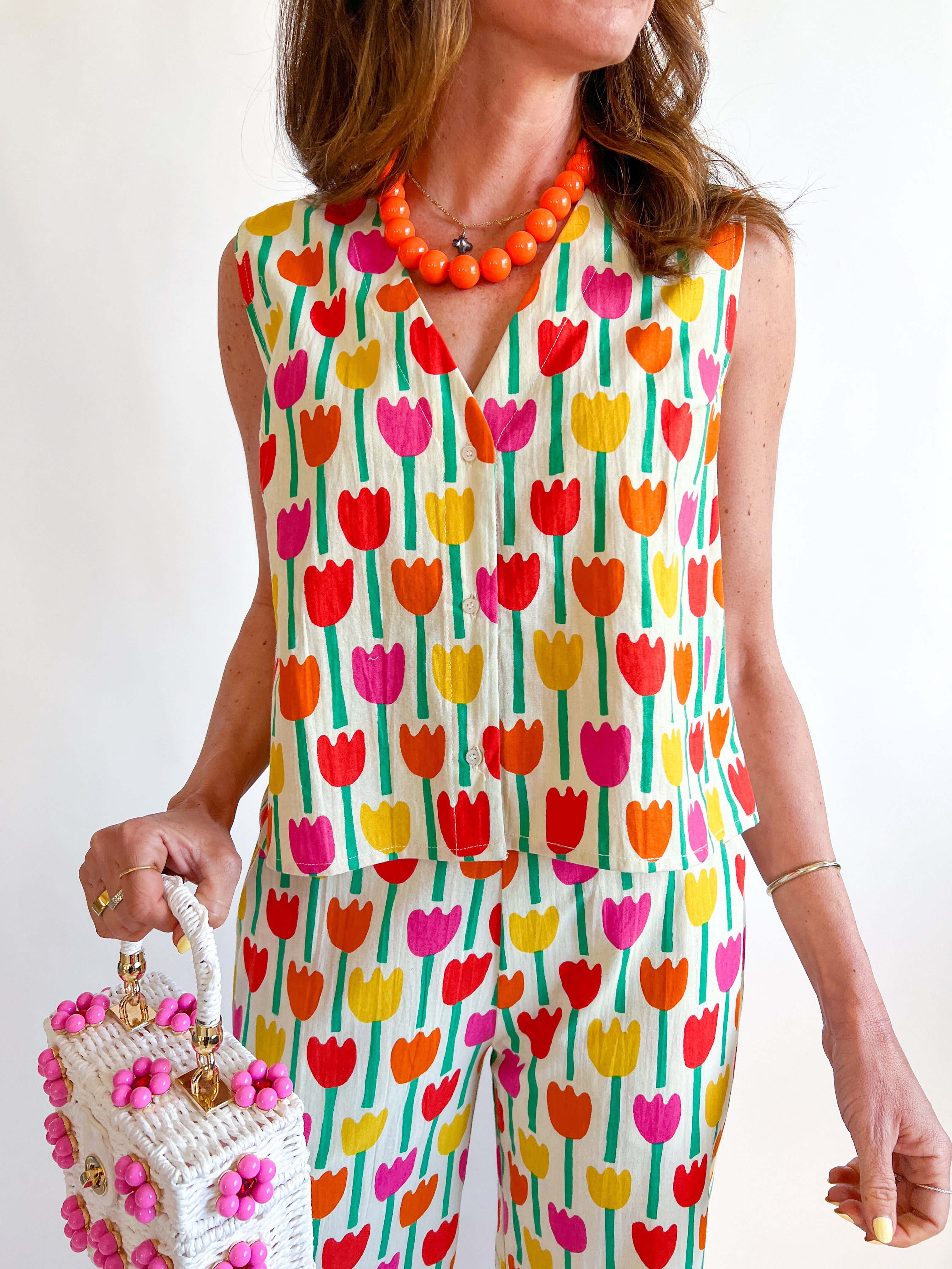 Brighten your wardrobe with this stunning Tulip Print Top! Featuring a vibrant floral design that captures the essence of spring, this piece brings effortless charm to any outfit. The eye-catching tulip pattern adds personality and style, whether you're dressing up for a special occasion or keeping it casual. Perfect for layering or wearing solo, this top is a versatile addition that'll have you feeling confident and fabulous. Elevate your everyday look with botanical beauty!