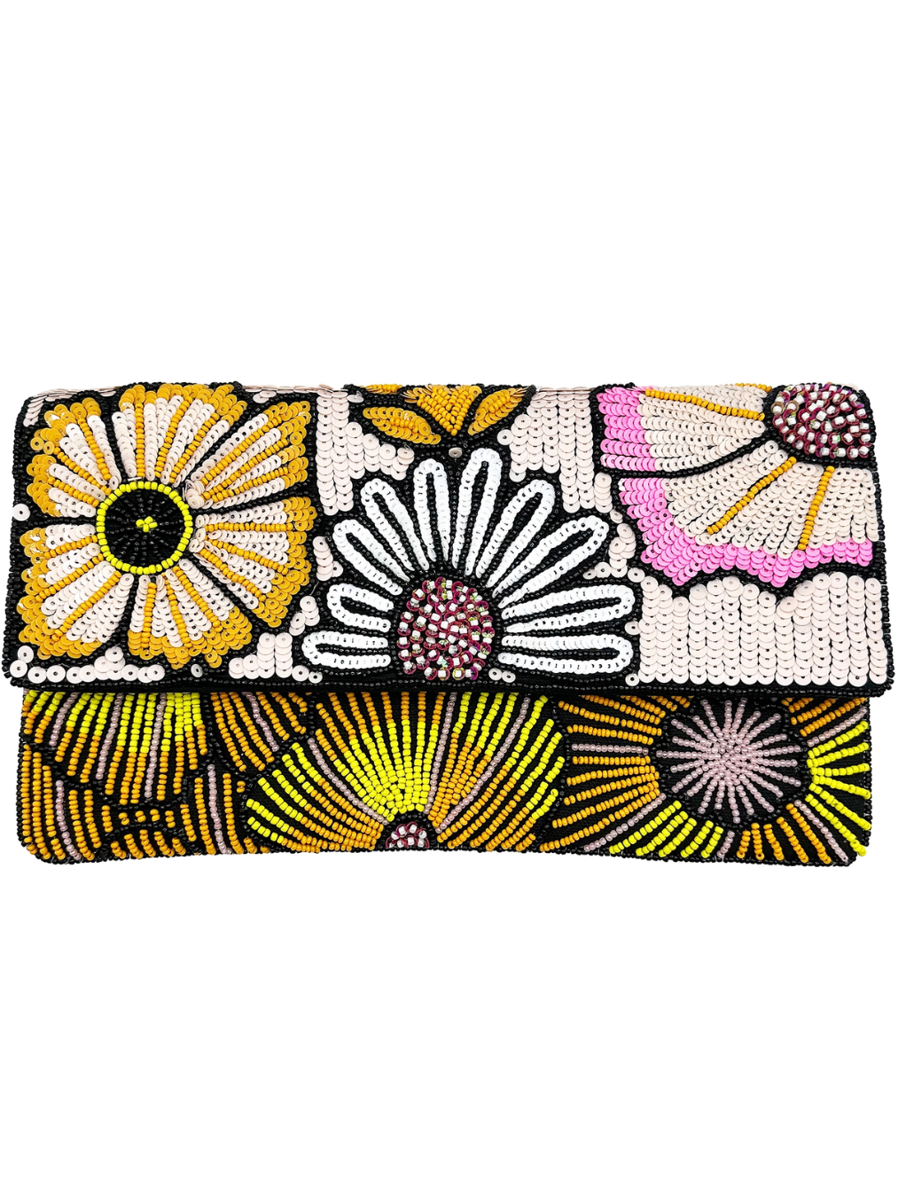 Yellow Floral Beaded Clutch