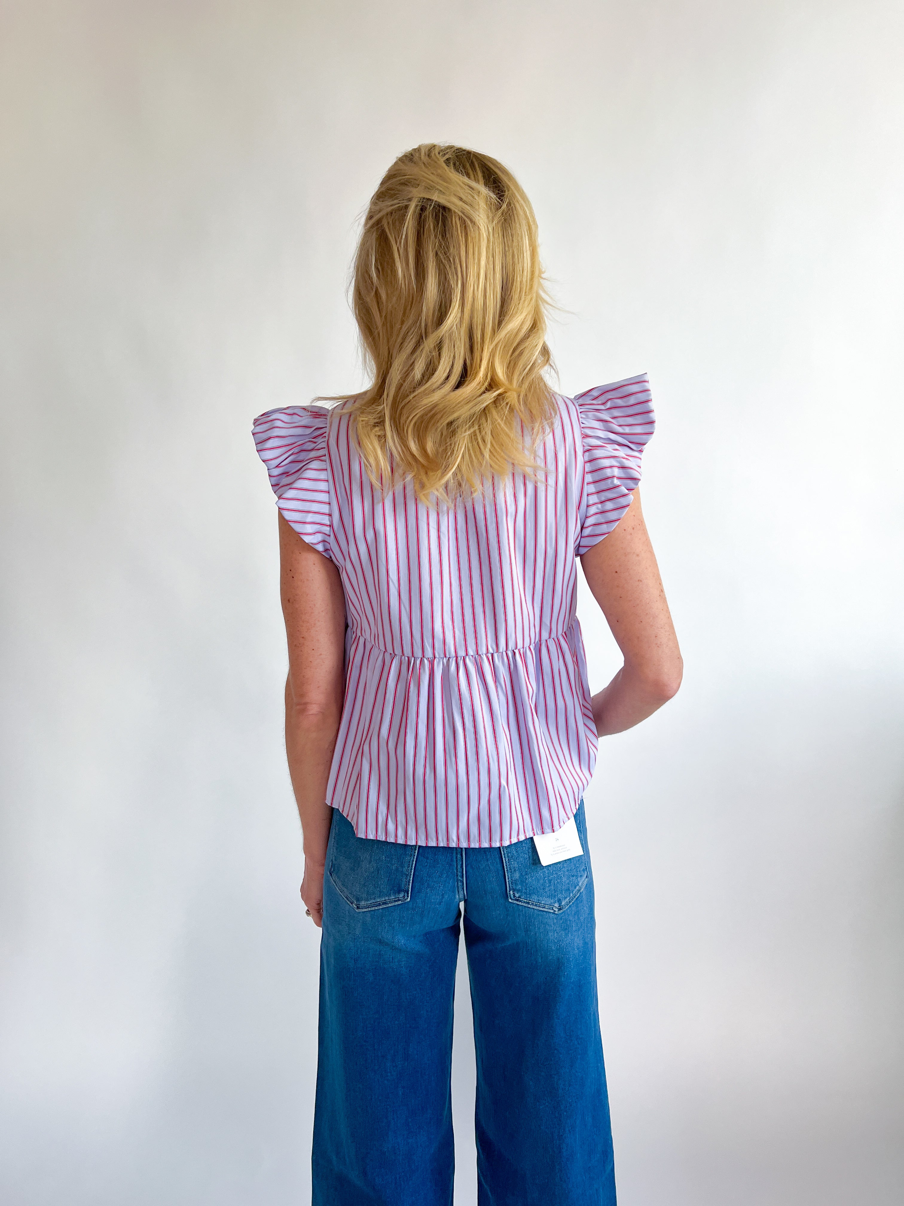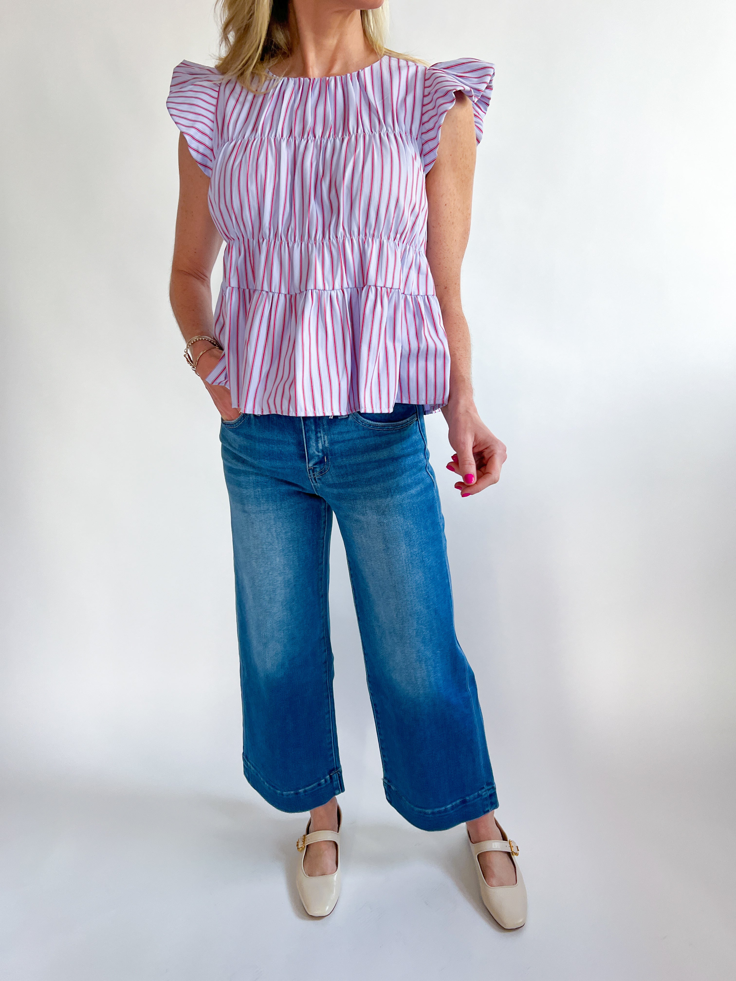 Ruffle Sleeve Striped Top