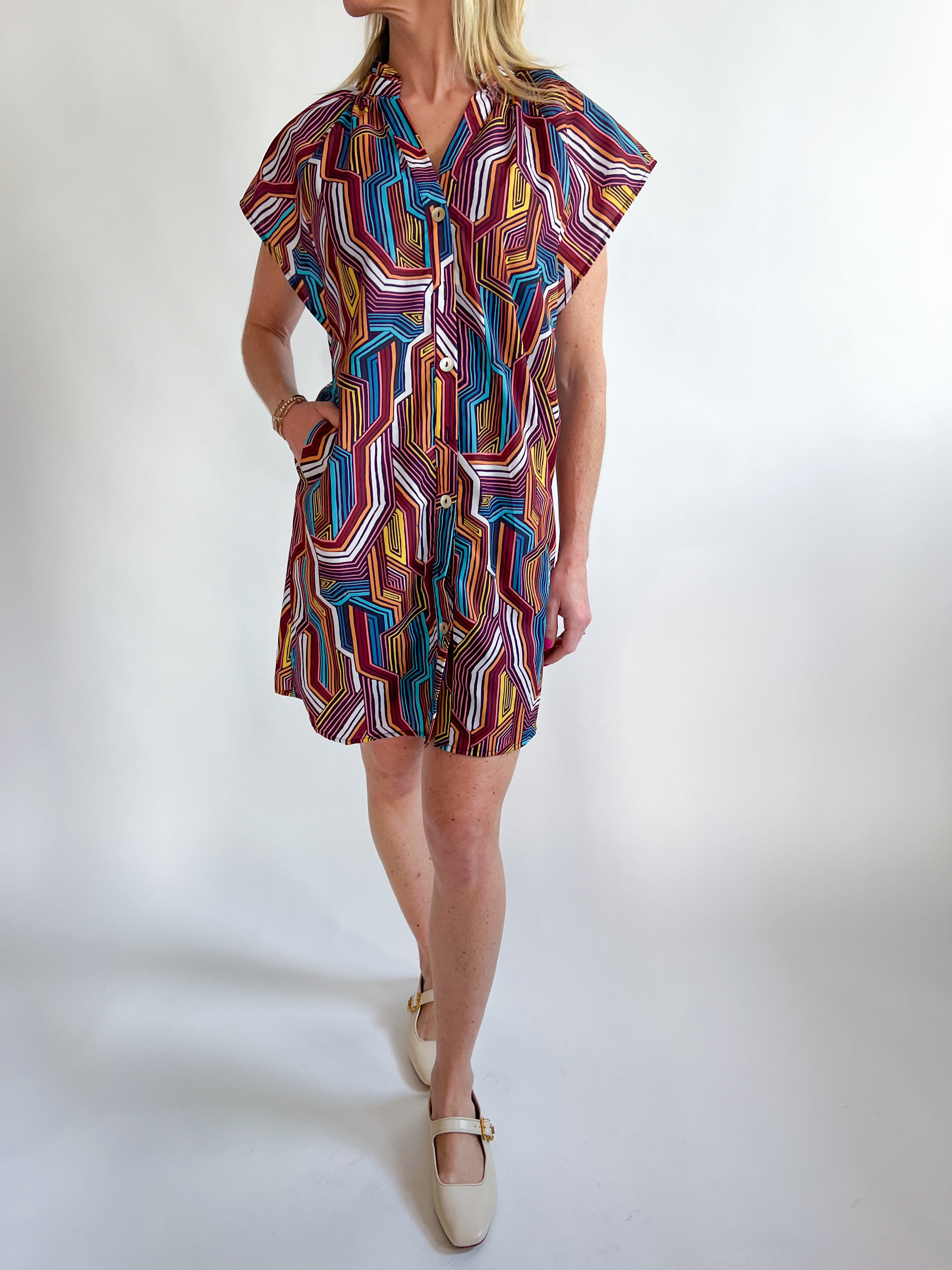 Cap Sleeve Geo Print Dress